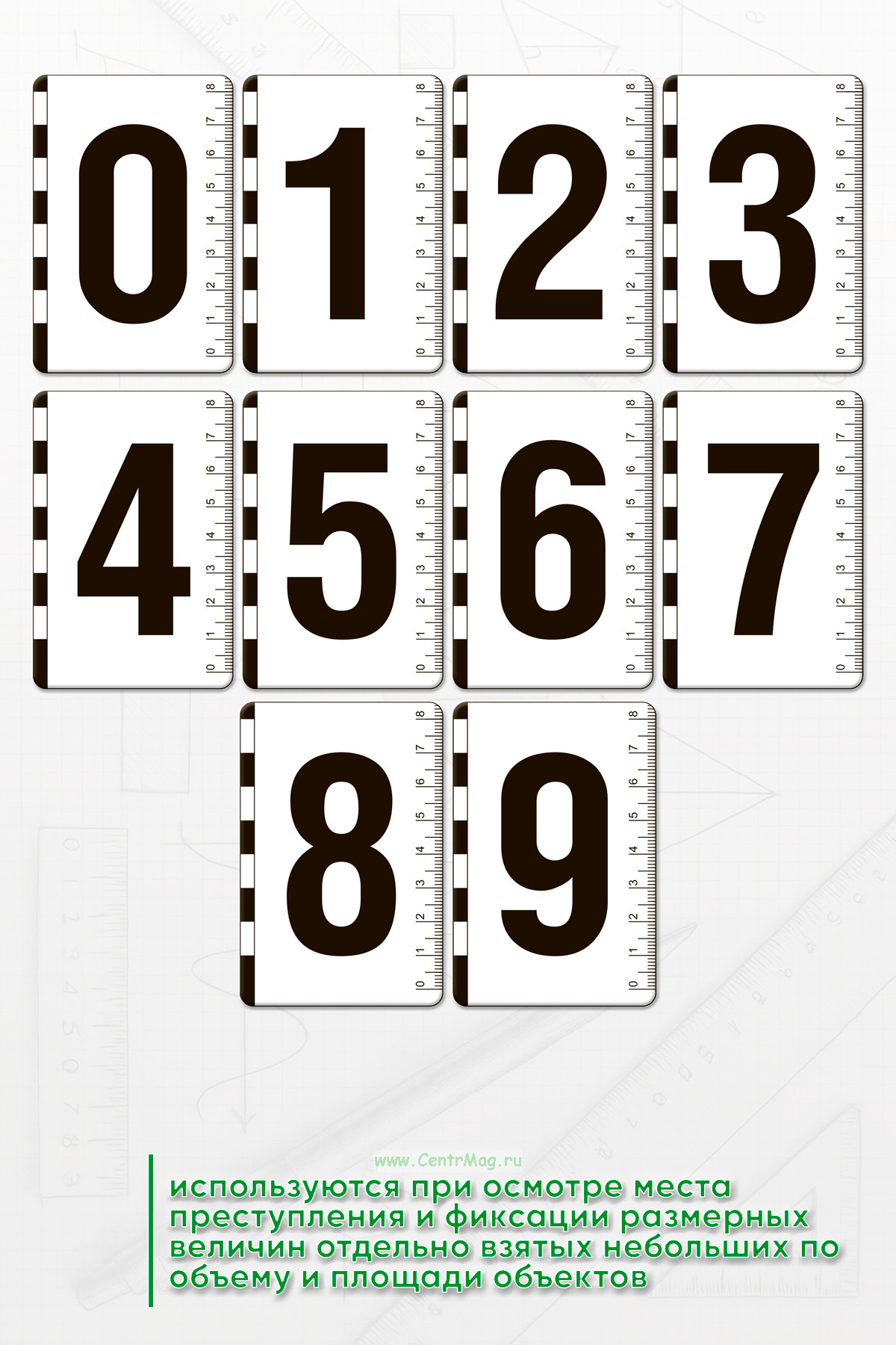 Набор используются при осмотре места преступления и фиксации размерных величин отдельно взятых небольших по объему и площади объектов