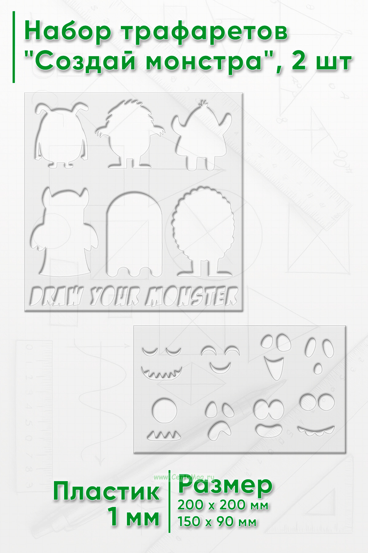 Набор трафаретов "Создай монстра", 2 шт