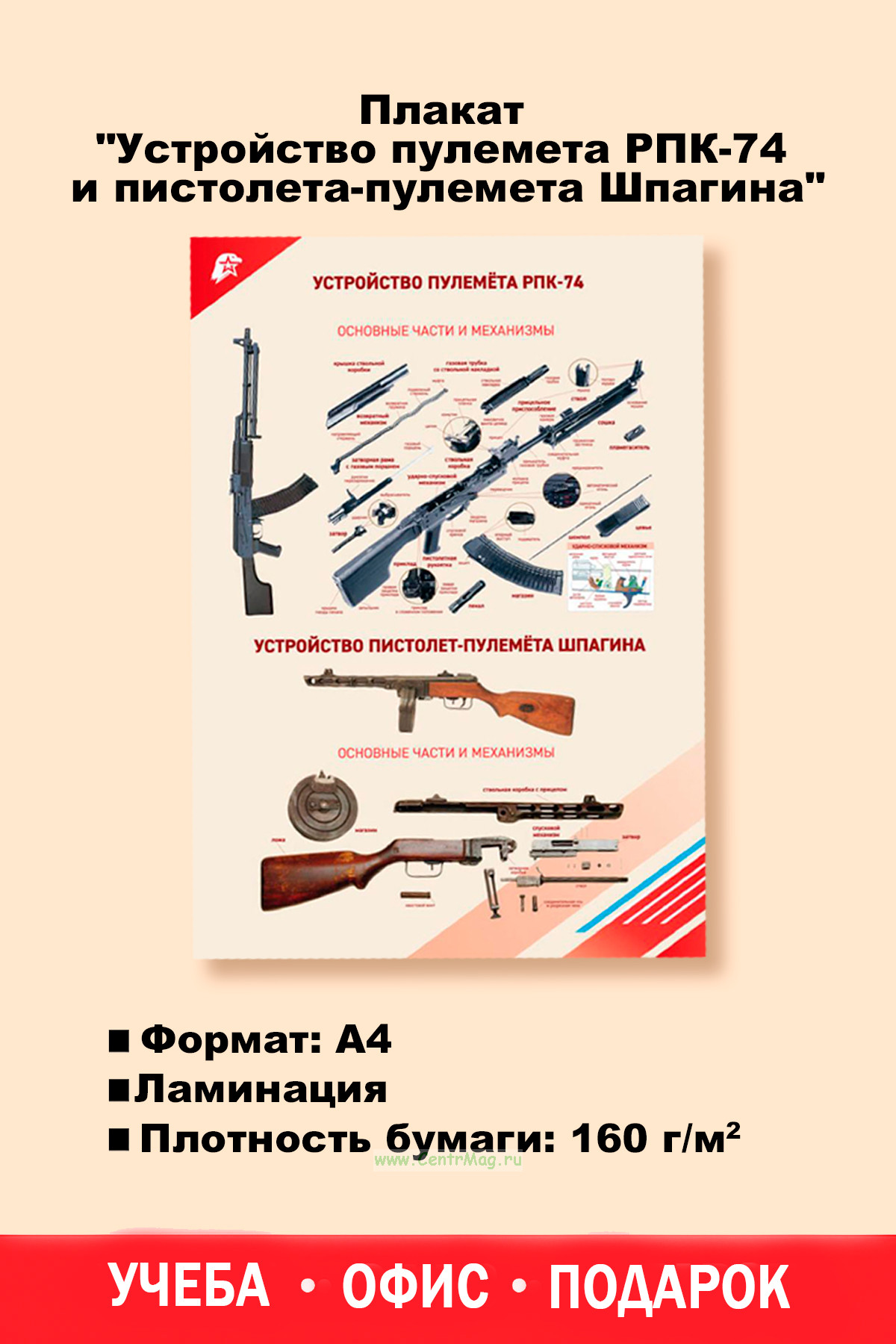 - Плакат "Устройство пулемета РПК-74 и пистолета-пулемета Шпагина" , А4, ламинция;