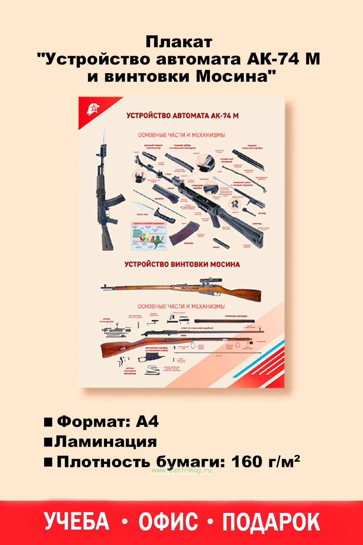 - Плакат "Устройство автомата АК-74 М и винтовки Мосина" , А4, ламинация;
