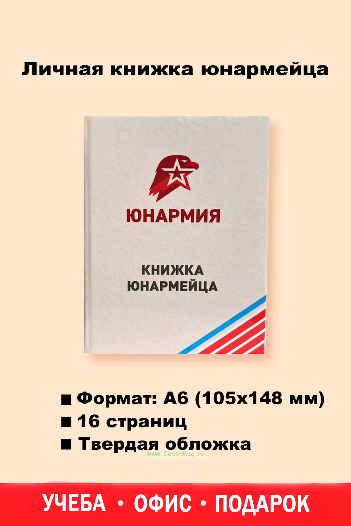 - Личная книжка юнармейца , А6 , 16 страниц, твердая обложка;