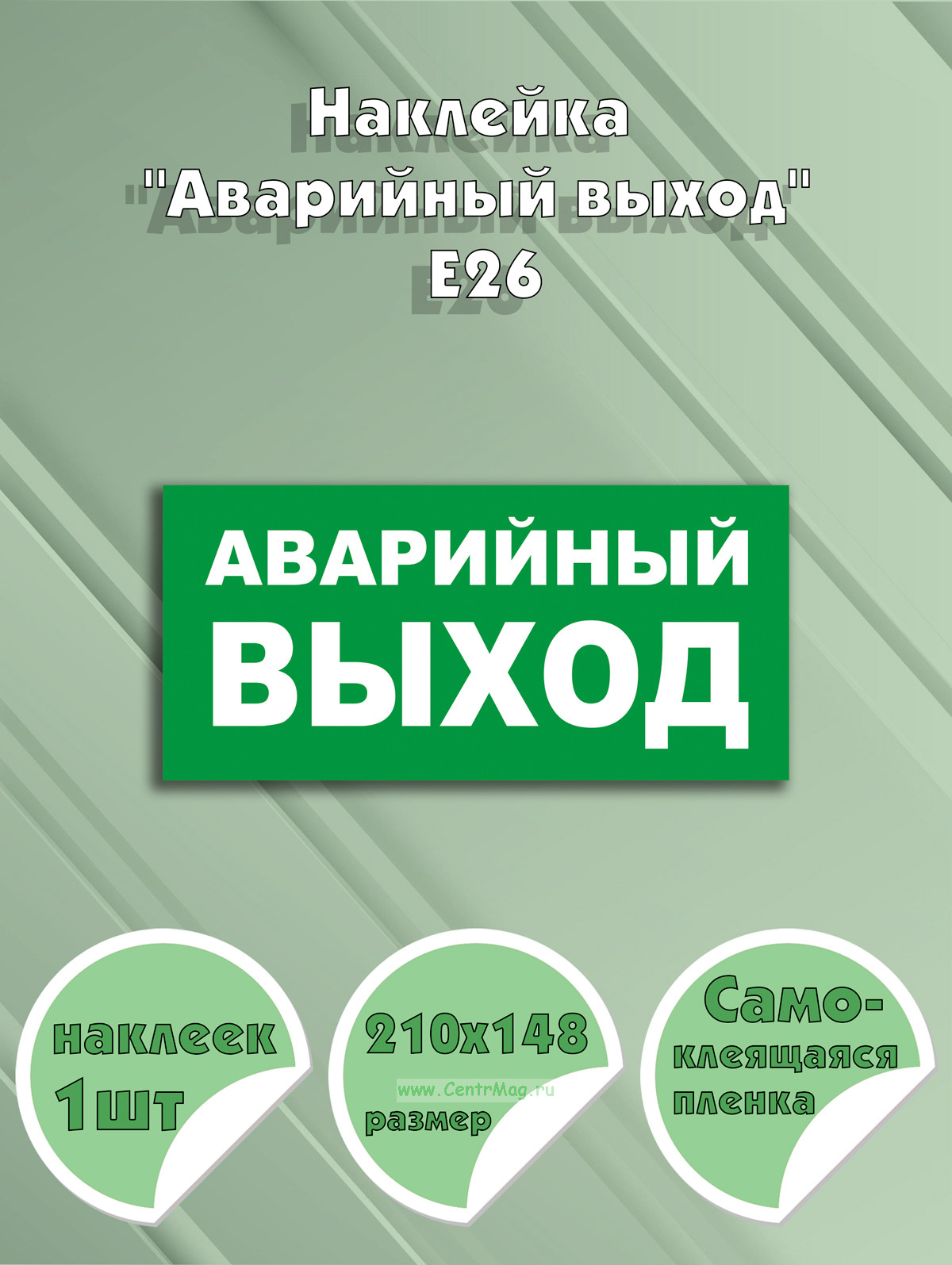 Наклейка «Аварийный выход» Е26 служит для четкого и заметного обозначения аварийного выхода, что обеспечивает безопасную и быструю эвакуацию при чрезвычайных ситуациях.Информирует персонал и посетителей о расположении аварийного выхода, что важно для ориентирования при экстренной эвакуации.