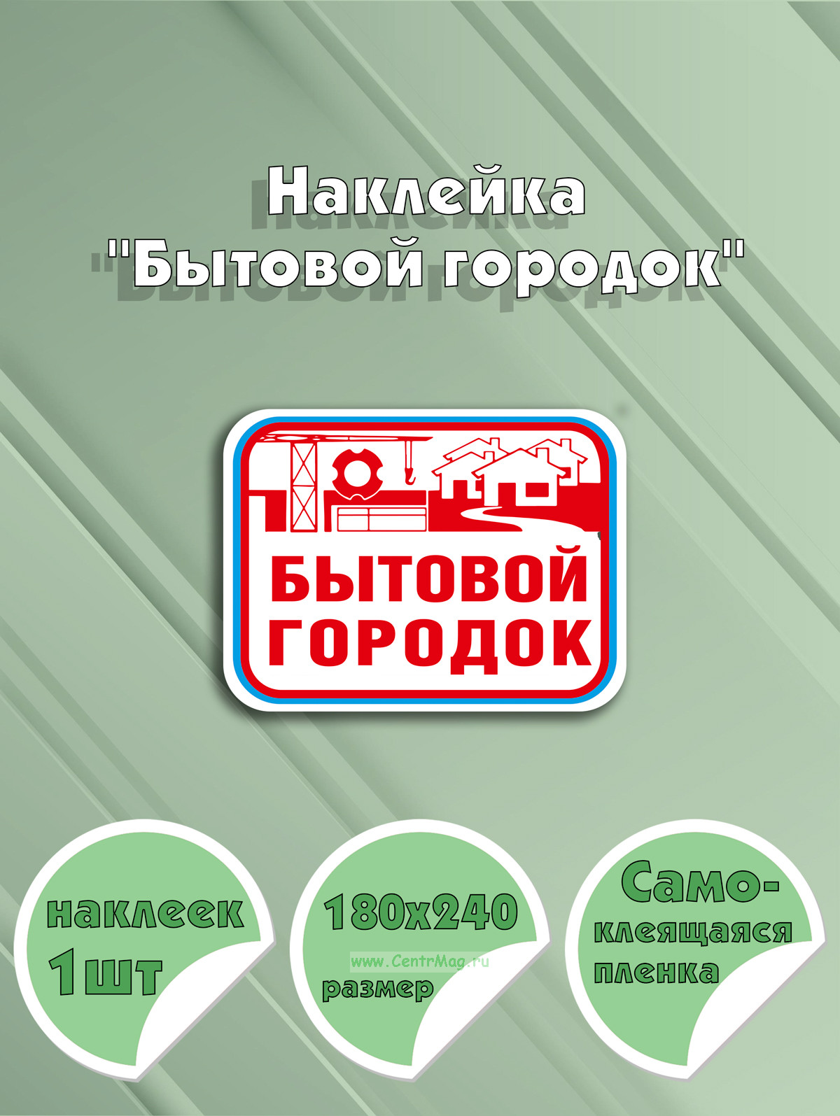 Наклейка «Бытовой городок» предназначена для обозначения или маркетингового обозначения жилого или бытового комплекса, района или зоны, которая организована как «городок» с бытовыми удобствами.