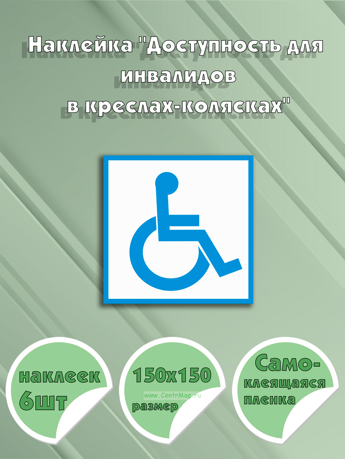 Наклейка «Доступность для инвалидов в креслах-колясках» предназначена для обозначения того, что в данном месте или объекте обеспечен удобный и безопасный доступ для людей с ограниченными возможностями, использующих кресла-коляски.