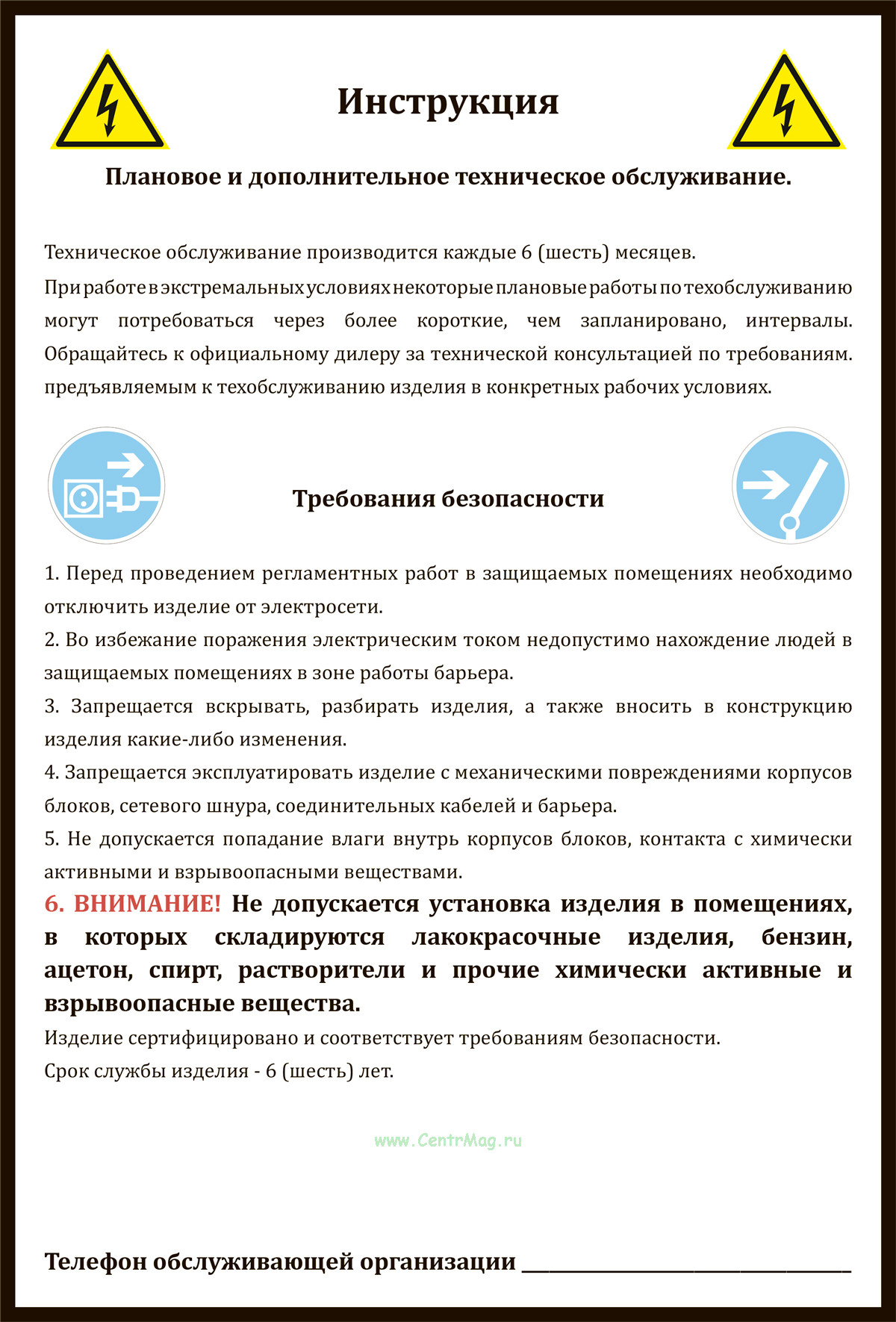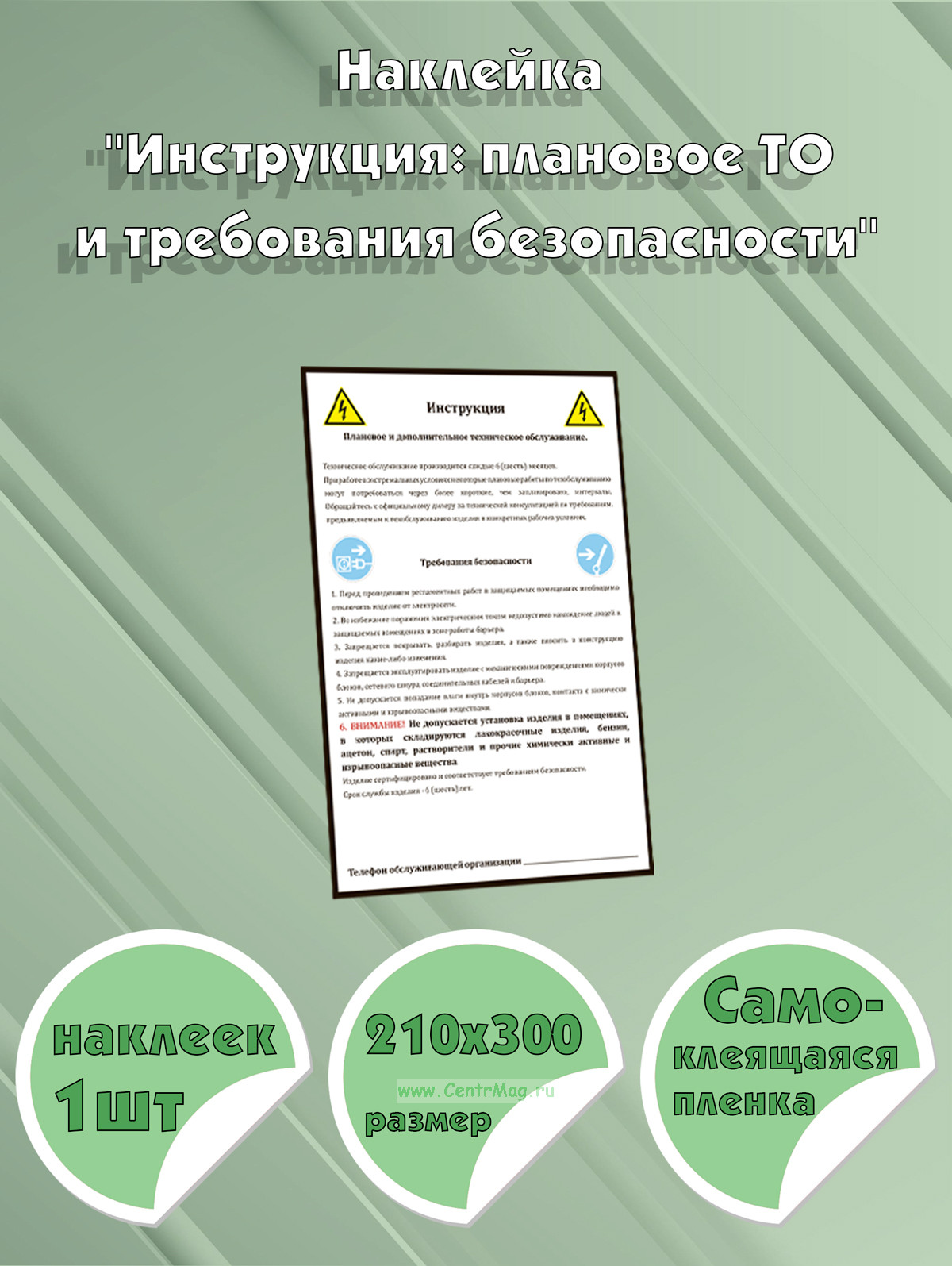 Наклейка "Инструкция: плановое ТО и требования безопасности"