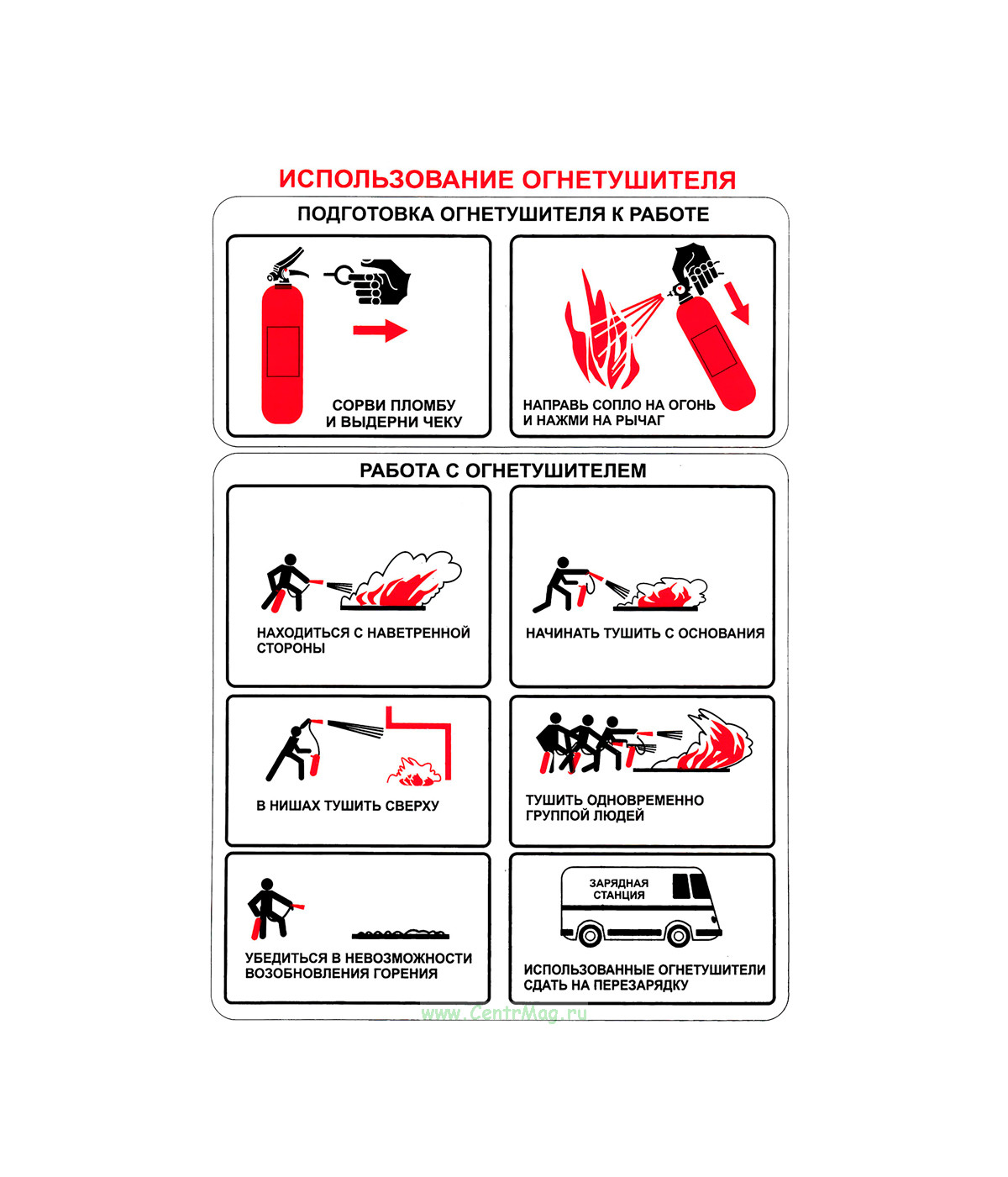 Наклейка "Использование огнетушителя" 21 х 30 см
