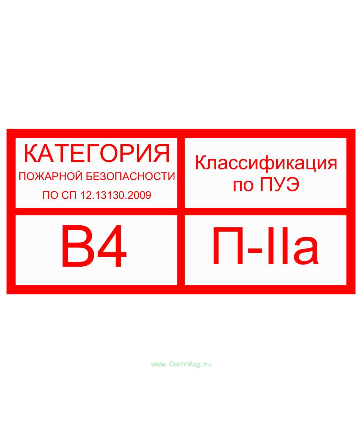 Наклейка "Категория помещения В4 П-IIа"