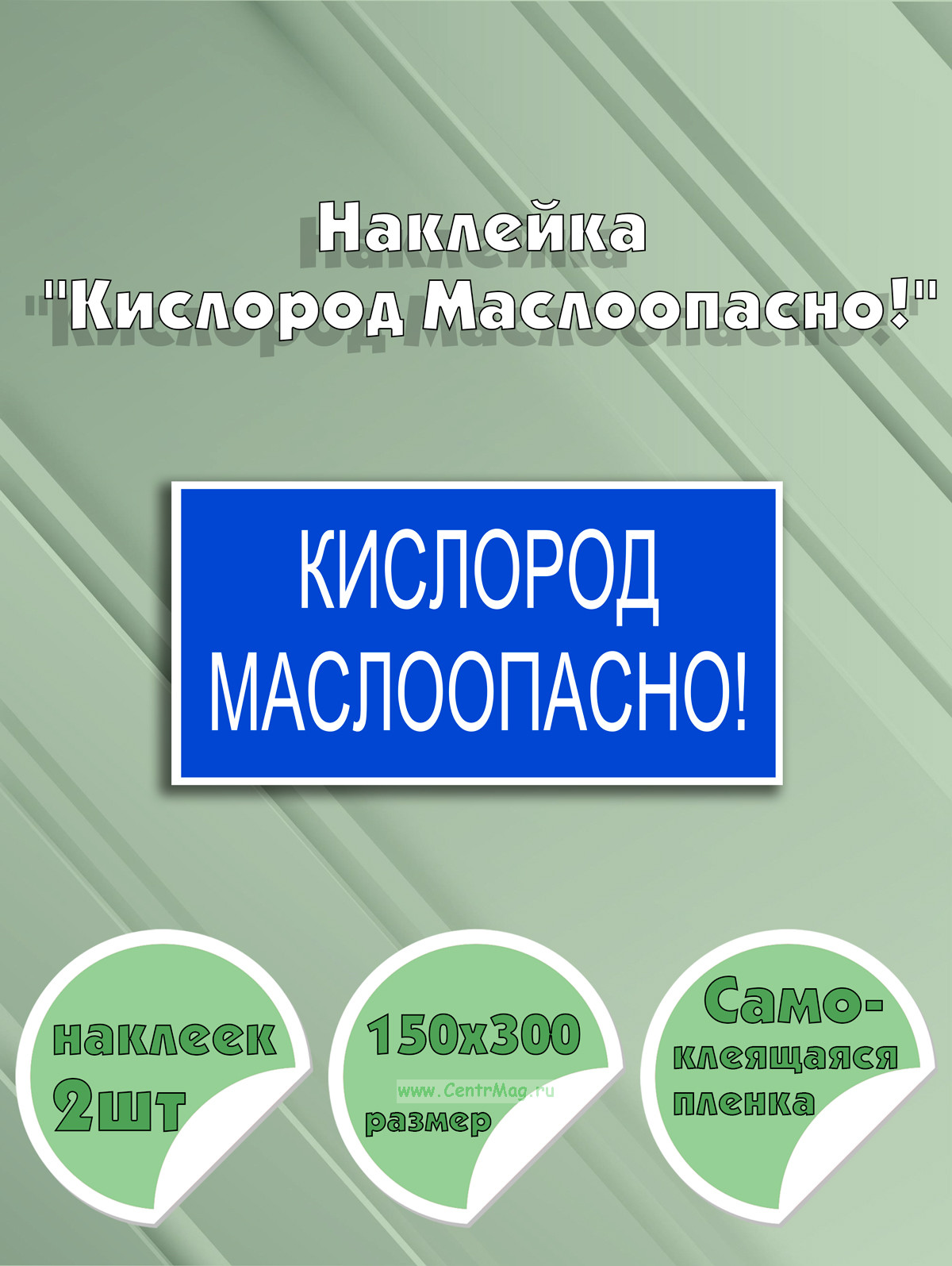 Наклейка "Кислород Маслоопасно!" 15 х 30 см