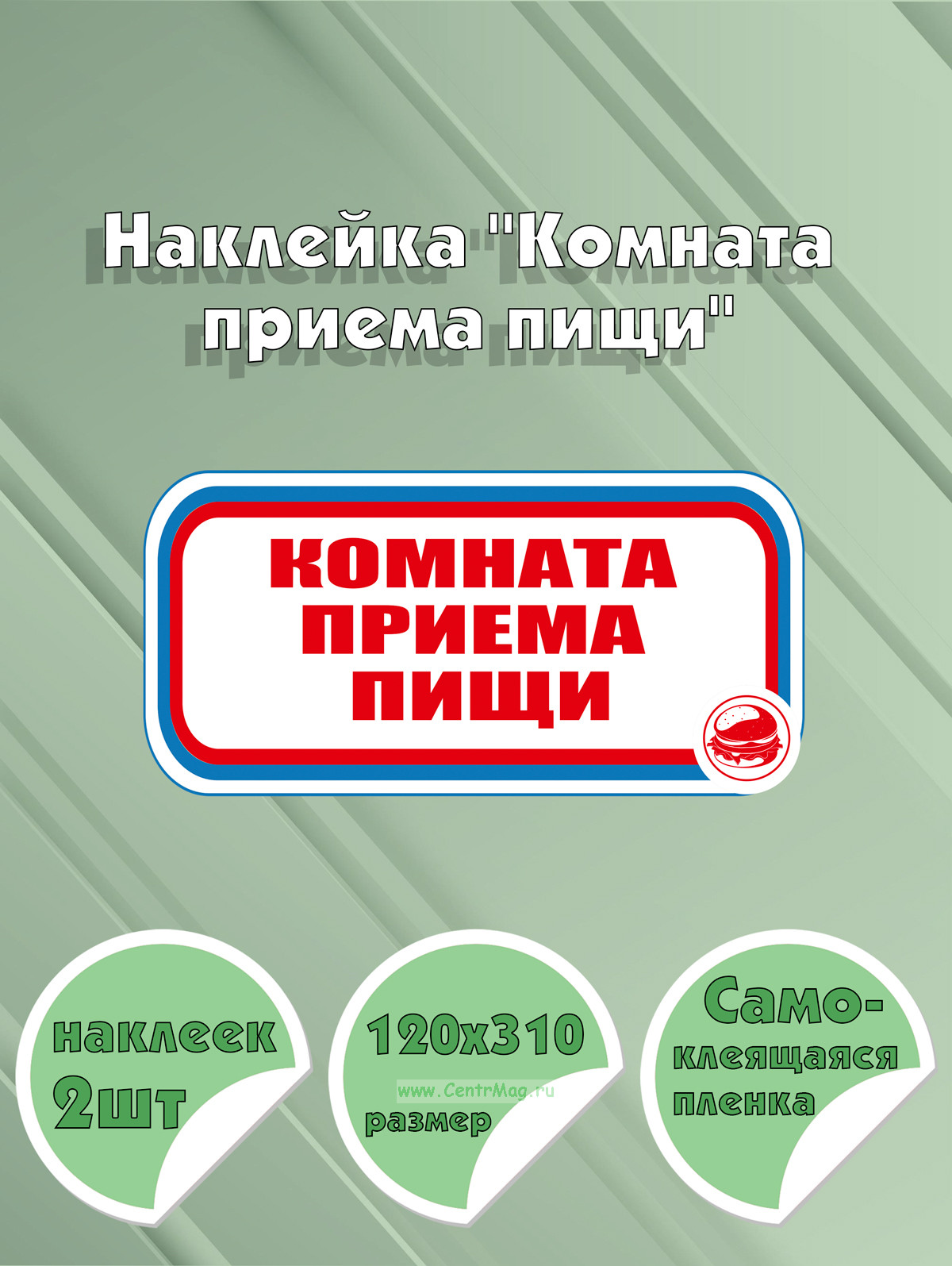 Наклейка "Комната приема пищи" предназначена для обозначения места, где сотрудникам, посетителям или жильцам разрешено или предназначено есть и принимать пищу. Ее основная цель — легко ориентировать людей и указывать, где находится специально выделенное пространственное помещение для отдыха и приема пищи.