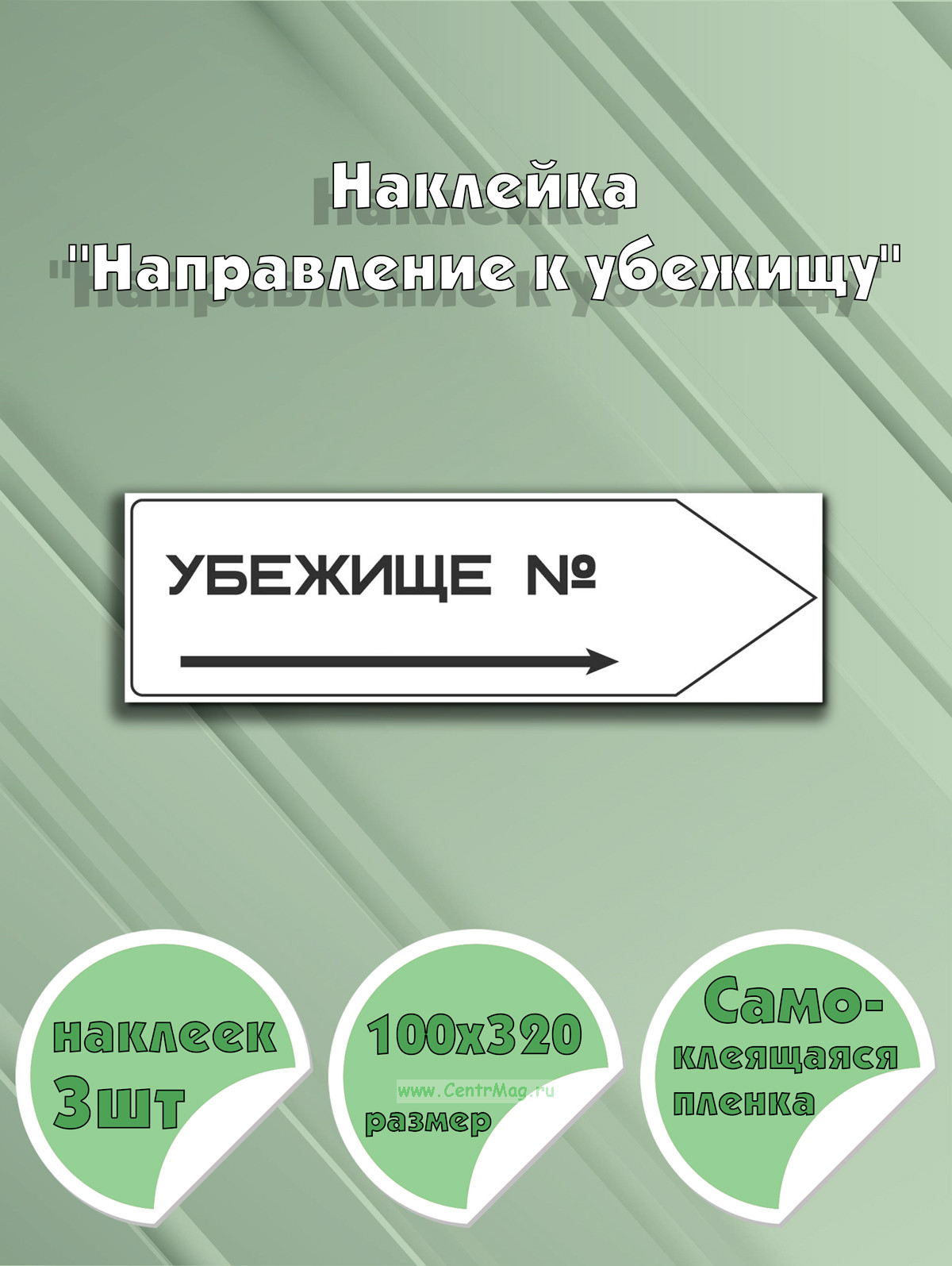 Наклейка "Направление к убежищу" 10 х 32 см