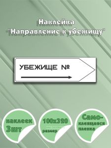 Наклейка с надписью "Направление к убежищу" предназначена для обозначения маршрута или направления, указывающего путь к убежищу или укрытию в случае чрезвычайных ситуаций (например, при пожаре, военных действиях или другом кризисе). Такая наклейка помогает людям быстро ориентироваться и находить безопасное место в экстренной ситуации, особенно в масштабных или незнакомых помещениях и территориях.