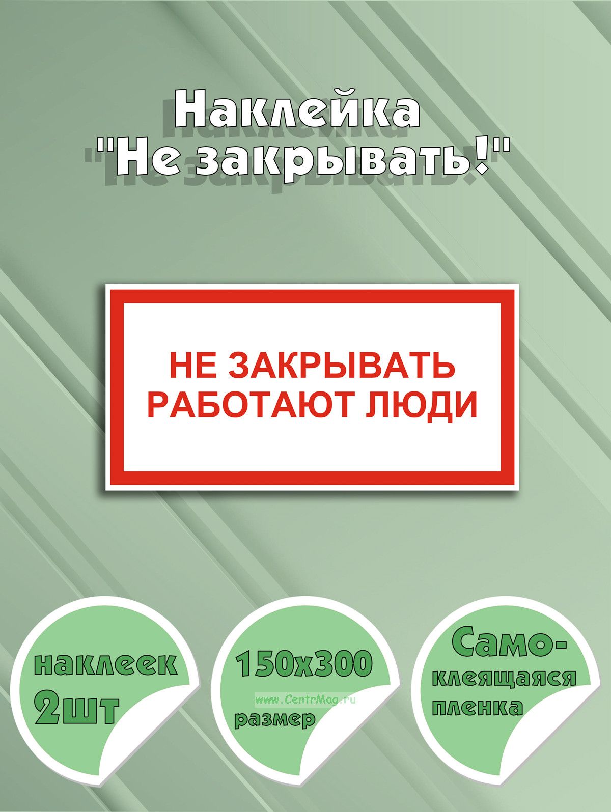 Наклейка с надписью «Не закрывать!» предназначена для предупреждения и информирования о том, что в данный момент в этом месте или помещении находятся сотрудники, осуществляющие работу.