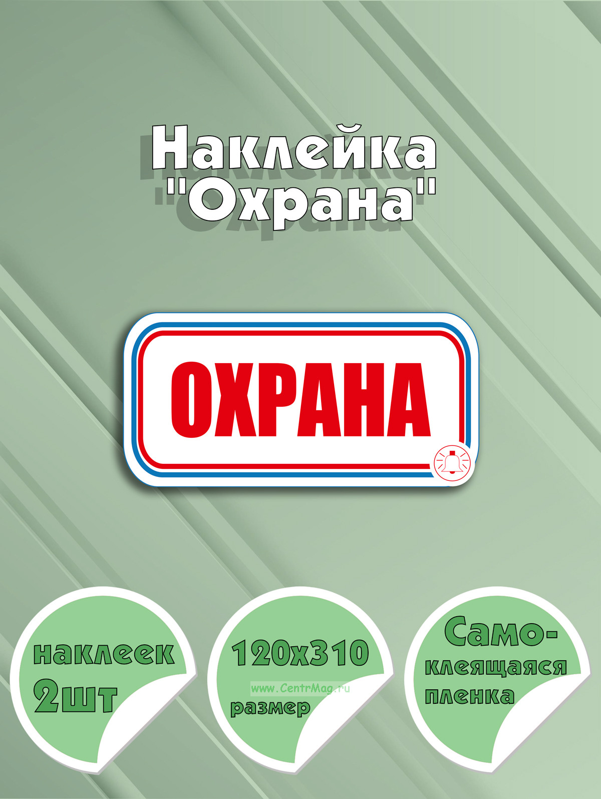 Наклейка "Охрана" предназначена для обозначения охранных структур или служб. Ее основное предназначение — информировать людей о присутствии охраны или охранной системы в данной зоне, чтобы повысить безопасность и предупредить несанкционированные действия.