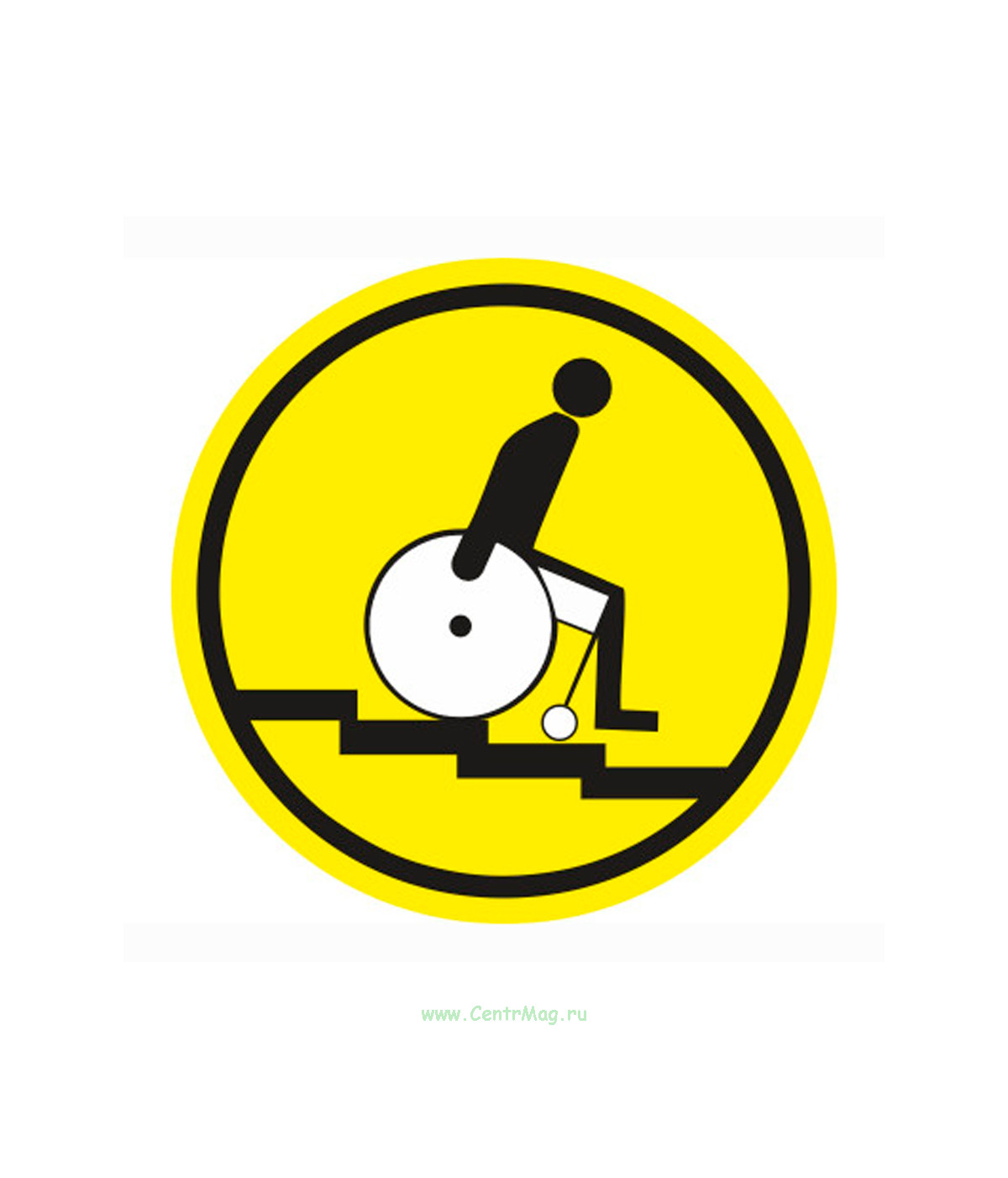 Наклейка предназначена для предупреждения о лестницах и ступеньках, которые могут представлять опасность для людей с ограниченными возможностями передвижения, включая тех, кто использует инвалидные коляски.