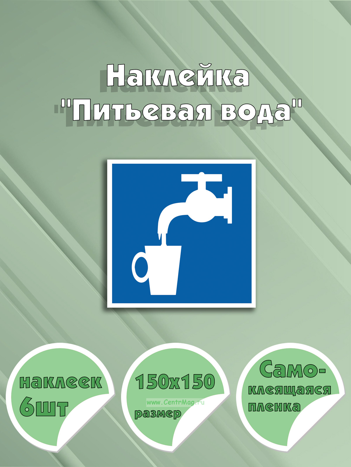 Наклейка «Питьевая вода» предназначена для обозначения, что данное водопроводное или другое водяное сооружение, контейнер или источник содержит безопасную для питья воду. Такая наклейка помогает потребителям быстро и легко определить, что воду можно употреблять в пищу без опасений за здоровье.