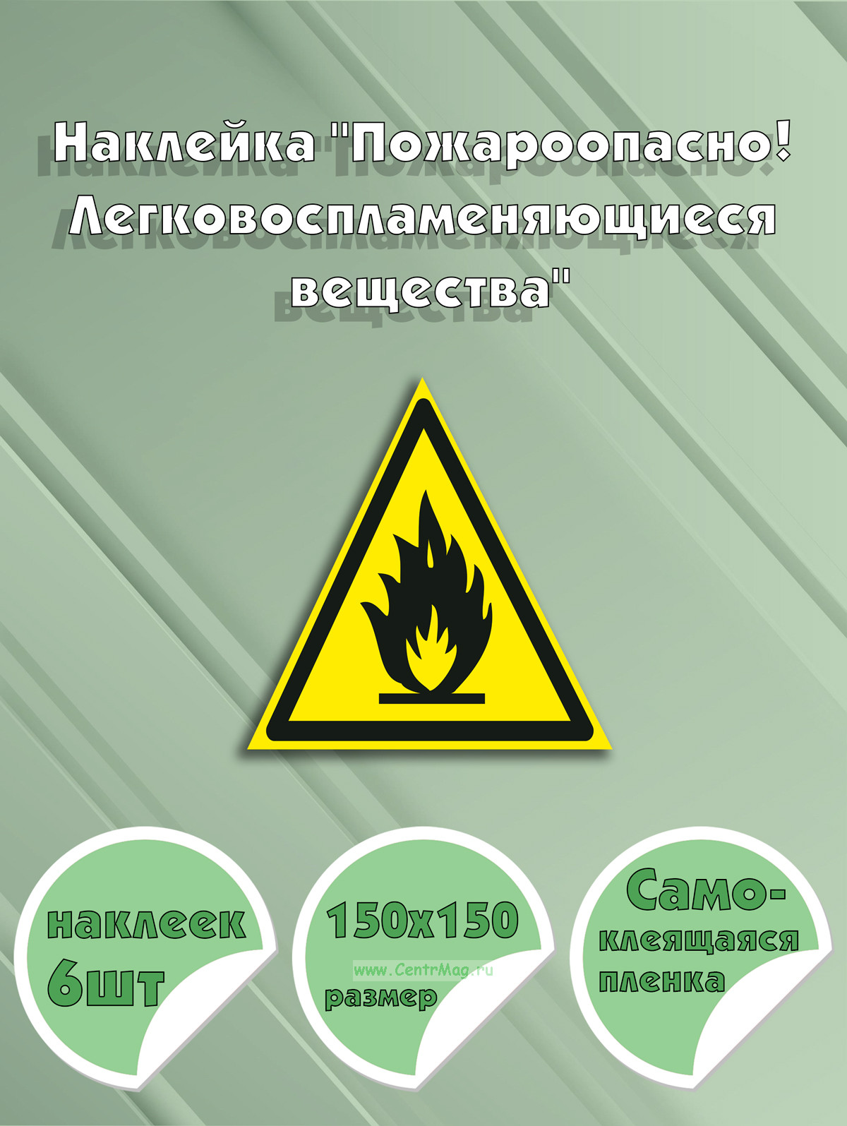 Наклейка "Пожароопасно! Легковоспламеняющиеся вещества" предназначена для предупреждения о наличии и опасности веществ, которые легко воспламеняются при контакте с источником огня, искрой или высоким температурным режимом.