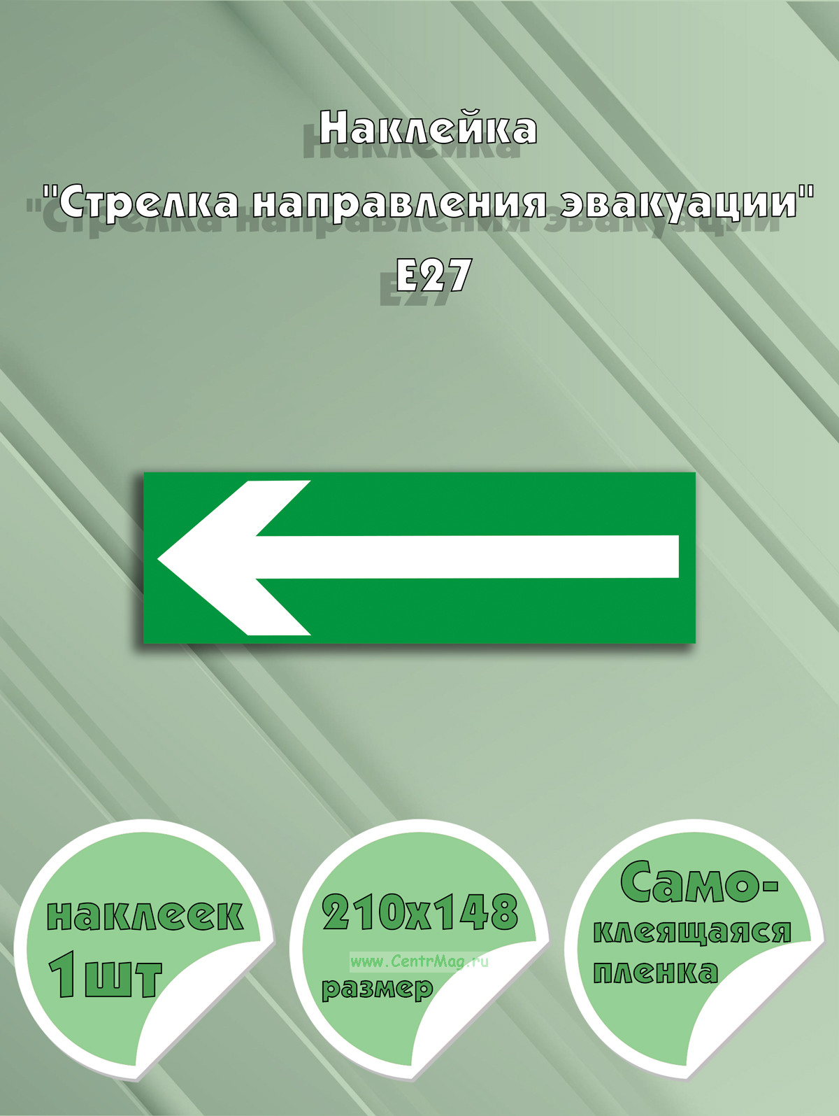Наклейка "Стрелка направления эвакуации" Е27 предназначена для визуального обозначения направления, в котором необходимо двигаться для эвакуации из здания или помещения в случае чрезвычайной ситуации (пожар, авария и т.п.).