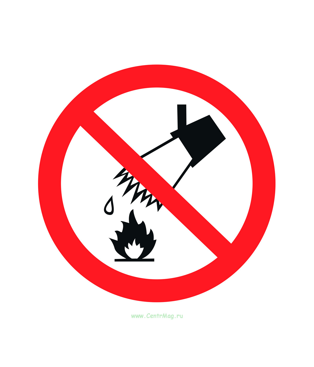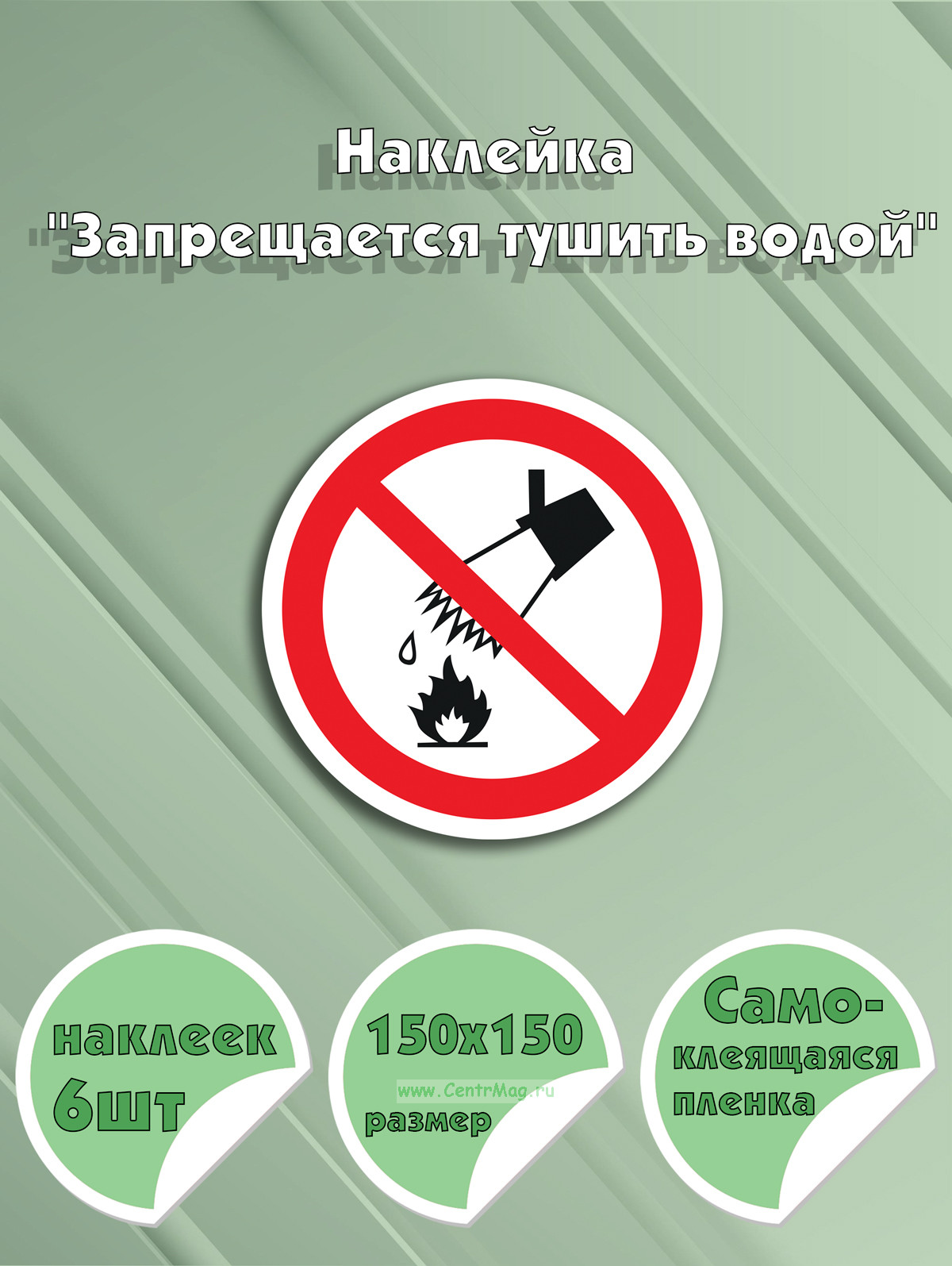 Наклейка с надписью "Запрещается тушить водой" предназначена для информирования людей о том, что использовать воду для тушения определённых видов пожара или в определённых ситуациях запрещено.Используют на оборудовании, содержащем горючие жидкости, электроприборы или другие вещества, при контакте с водой которых возможны химические реакции, вспышки или повреждения.
