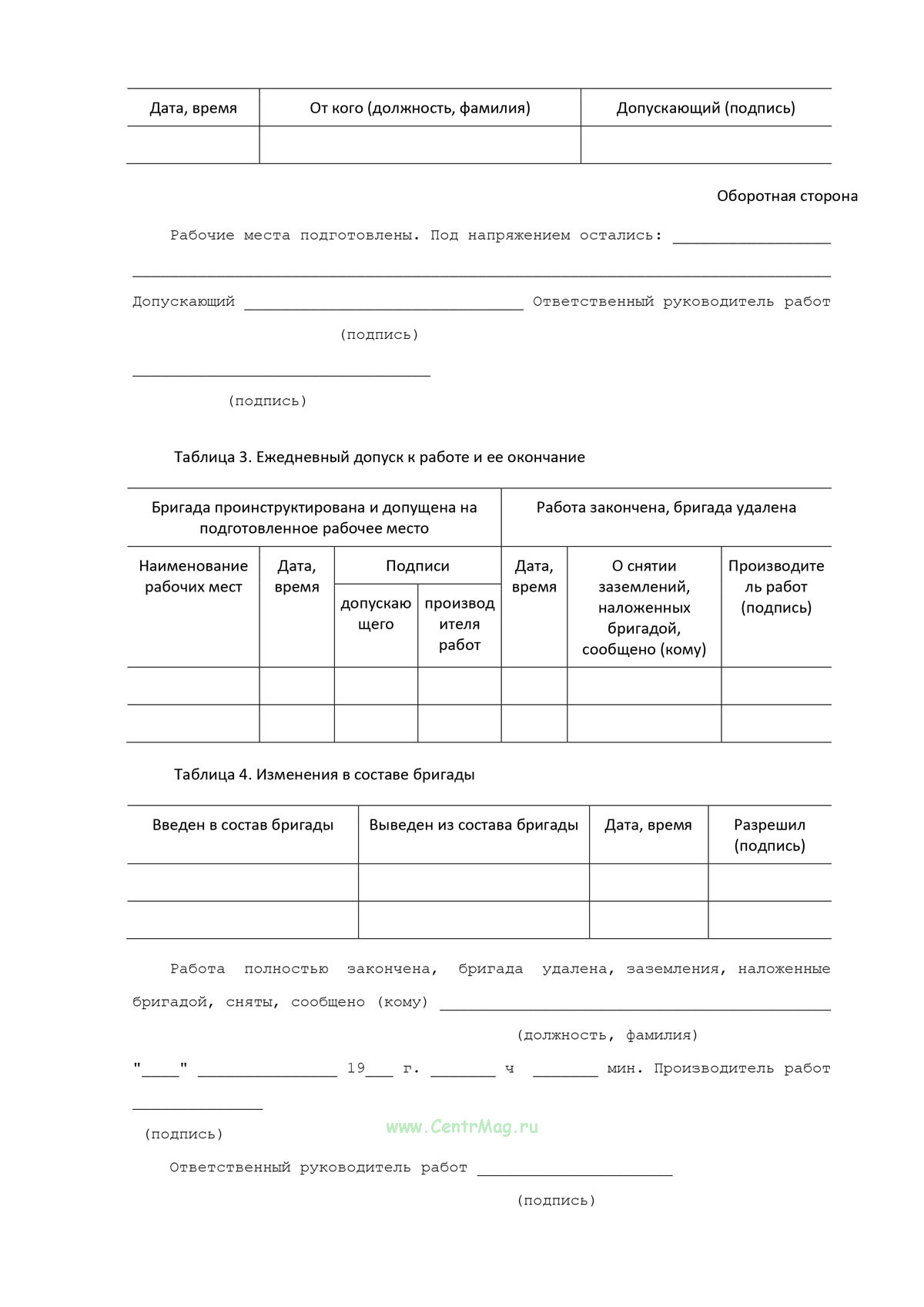 Наряд-допуск на выполнение работ в действующих электроустановках продается только как чистый незаполненный бланк, без печатей и подписей соответствует 149-ФЗ от 27.07.2006