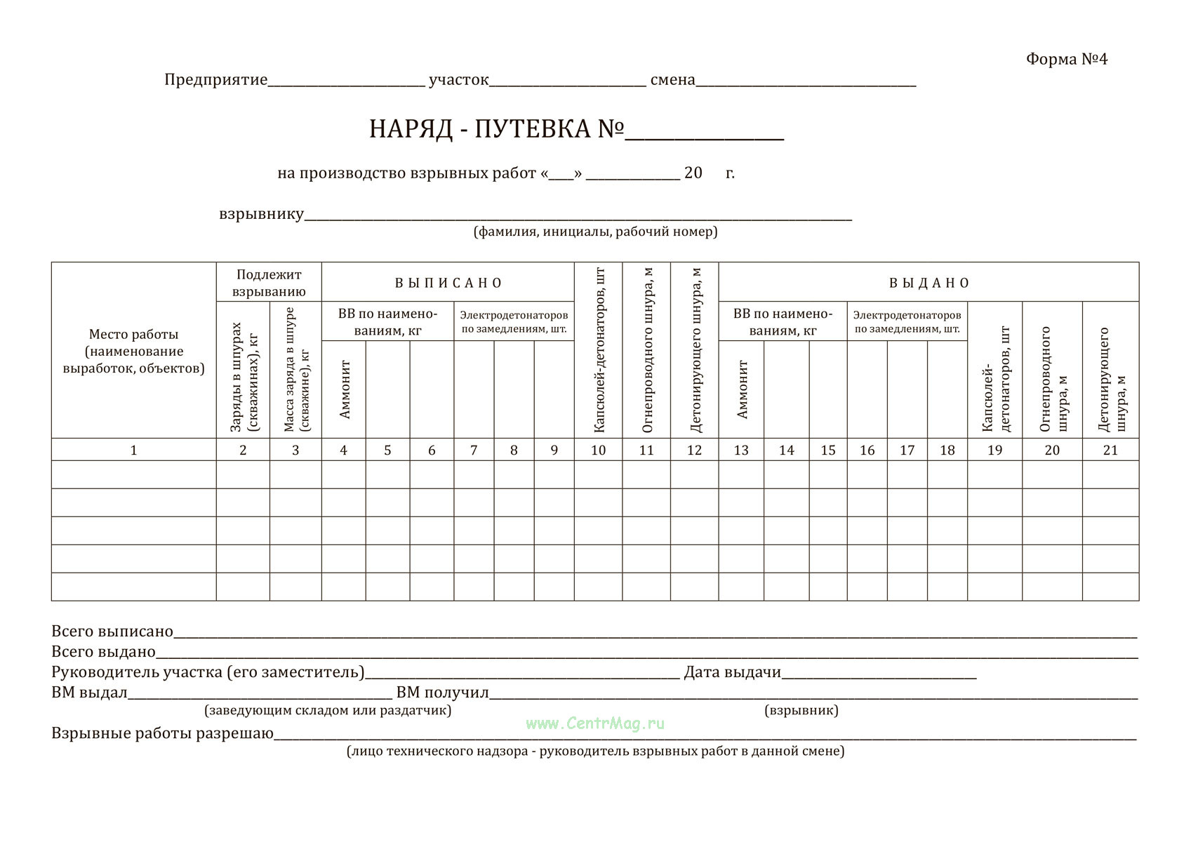 Наряд-путевка (Форма №4) продается только как чистый незаполненный бланк, без печатей и подписей соответствует 149-ФЗ от 27.07.2006