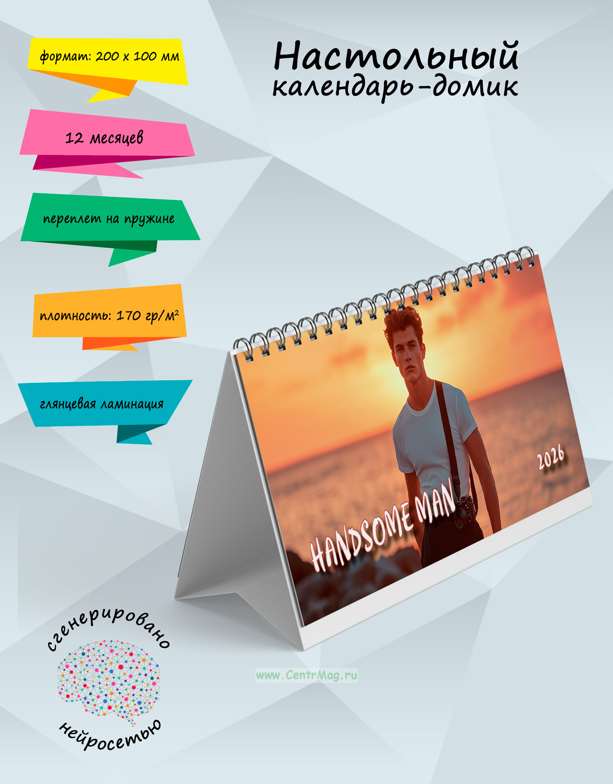 Календарь содержит изображения красивых и харизматичных мужчин, сгенерированные с помощью нейросети. Календарь будет отличным подарком для ваших родных, друзей, знакомых, коллег или даже для себя.