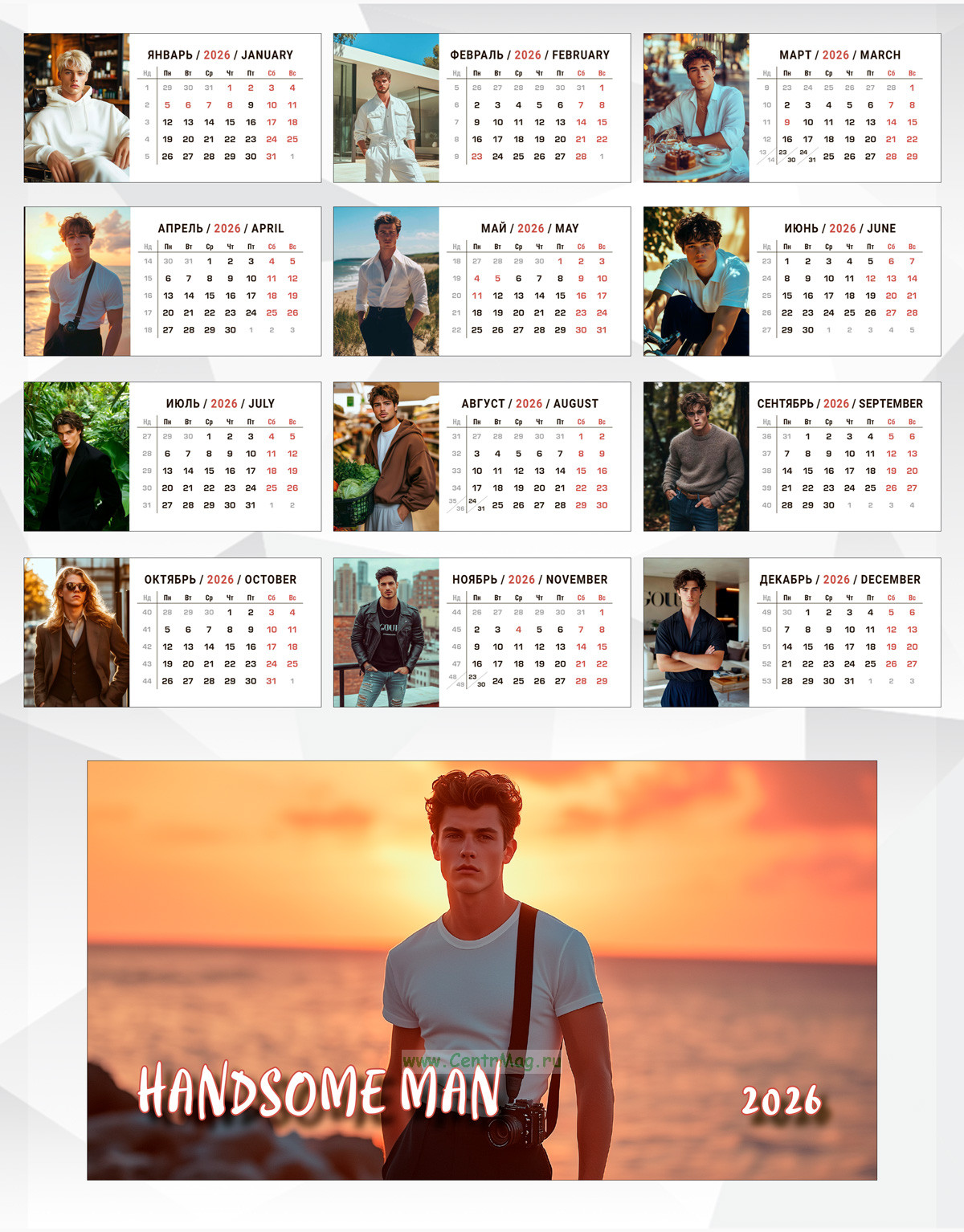 Календарь настенный, перекидной "Handsome man" на 2026 год (550 руб.)