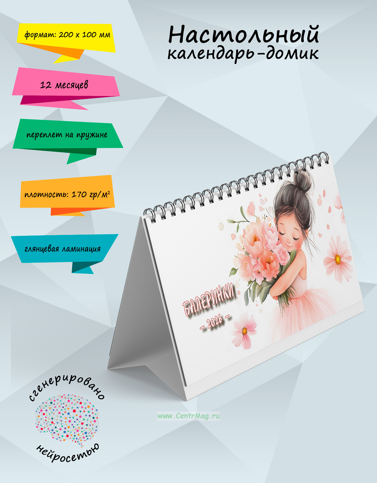 Календарь содержит изображения маленьких симпатичных балеринок, сгенерированные с помощью нейросети. Календарь будет отличным подарком для ваших родных, друзей, знакомых, коллег или даже для себя.