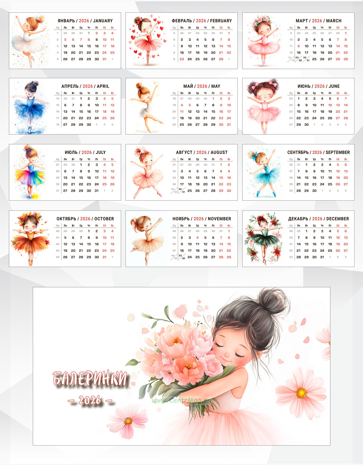 Календарь настенный, перекидной "Балеринки" на 2026 год (550 руб.)