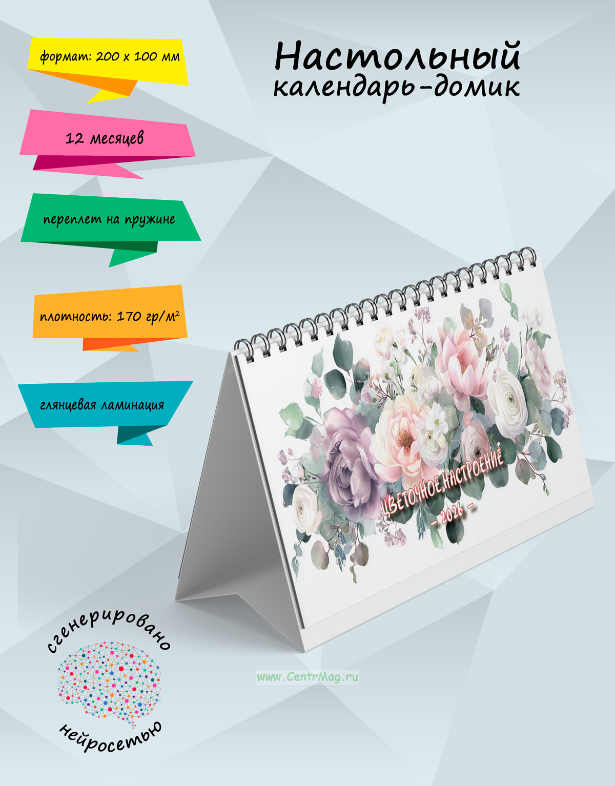 Настольный календарь-домик "Цветочное настроение" на 2026 год