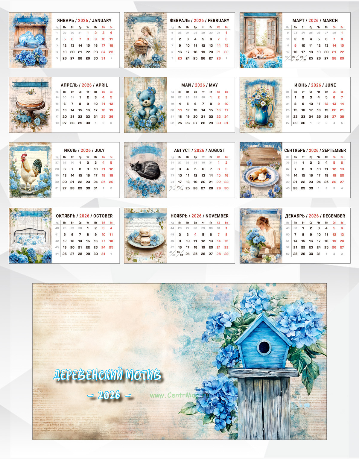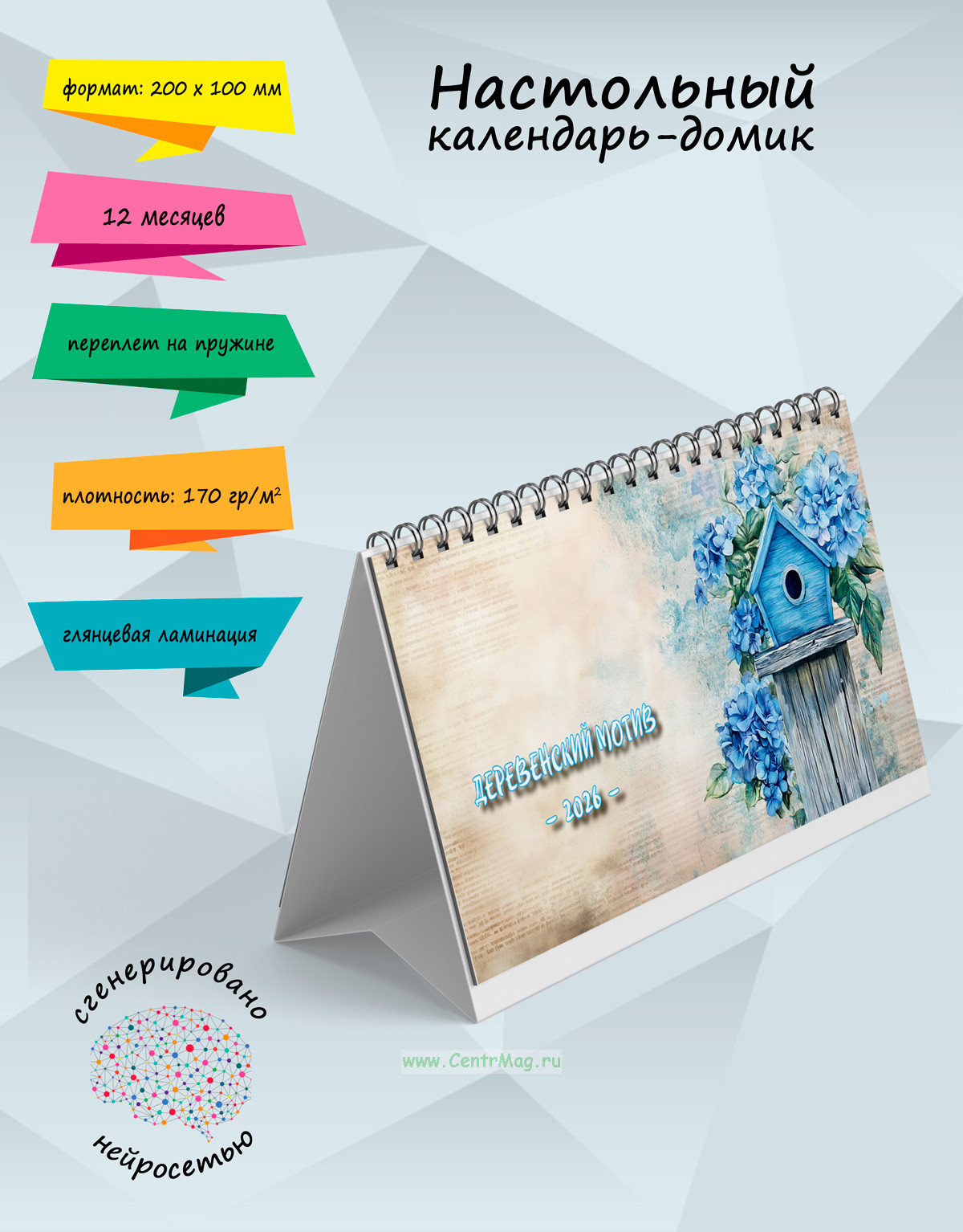 Настольный календарь-домик "Деревенский мотив" на 2026 год