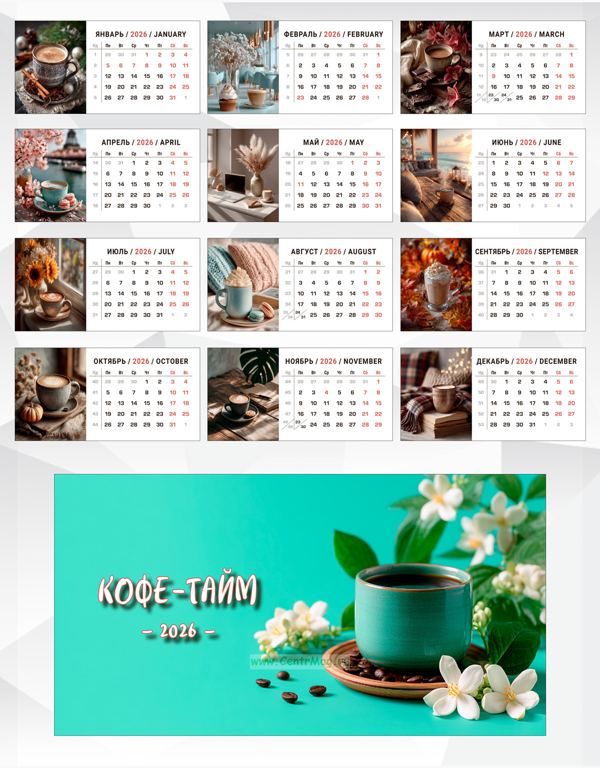 Календарь настенный, перекидной "Кофе-тайм" на 2026 год (550 руб.)