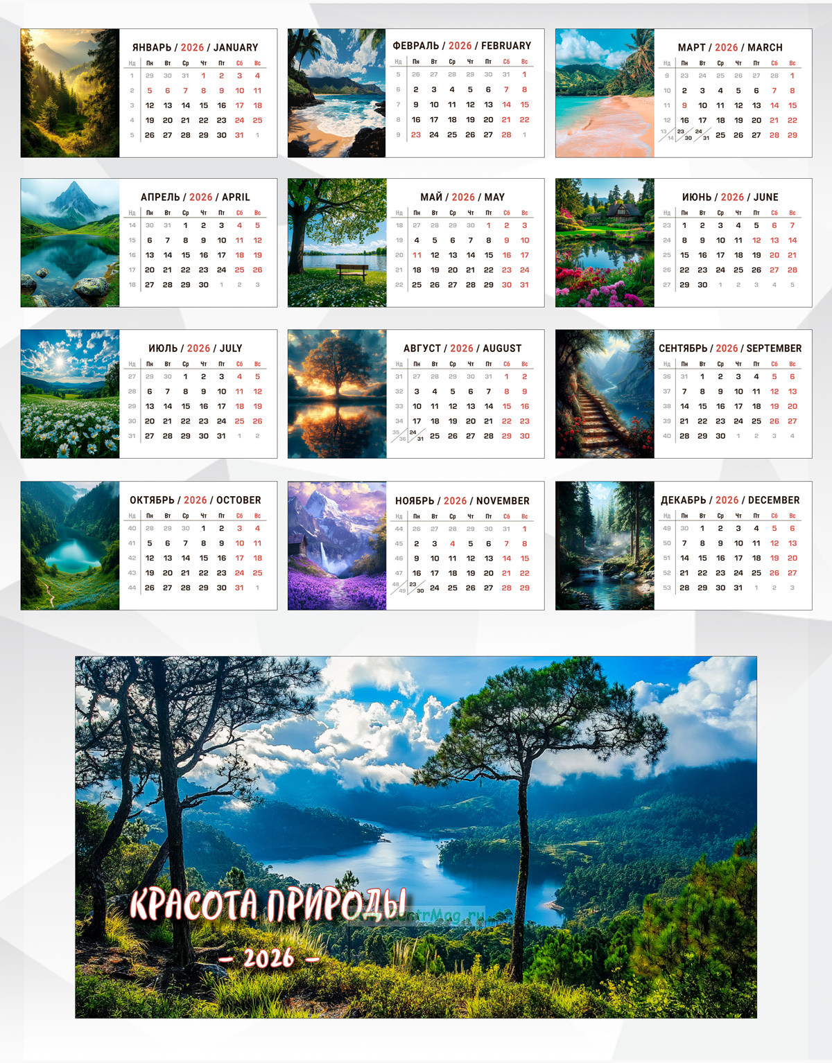 Календарь содержит завораживающие изображения красивых видов природы, сгенерированные с помощью нейросети. Календарь будет отличным подарком для ваших родных, друзей, знакомых, коллег или даже для себя.