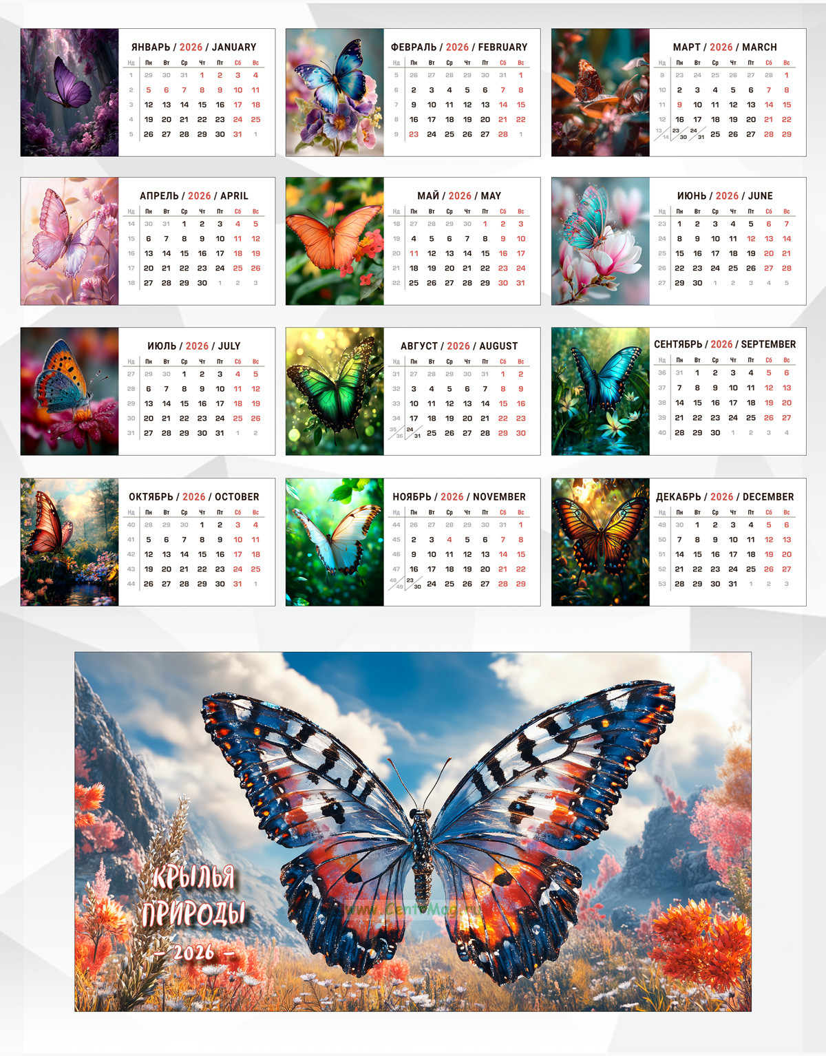 Календарь содержит изображения красивых бабочек, сгенерированные с помощью нейросети. Календарь будет отличным подарком для ваших родных, друзей, знакомых,
