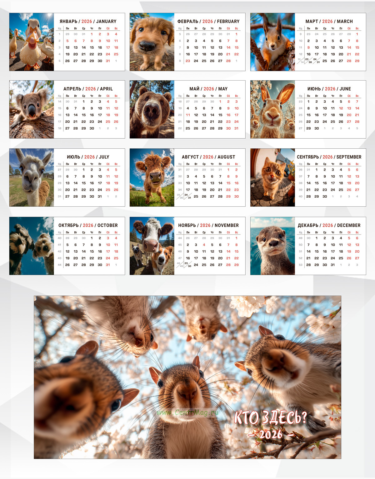 Календарь настенный, перекидной "Кто здесь?" на 2026 год (550 руб.)