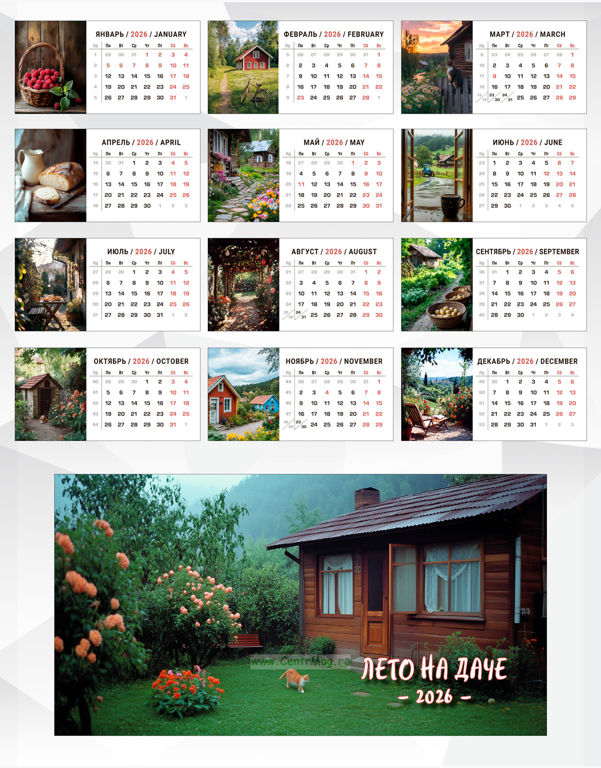 Настольный календарь-домик "Лето на даче" на 2026 год
