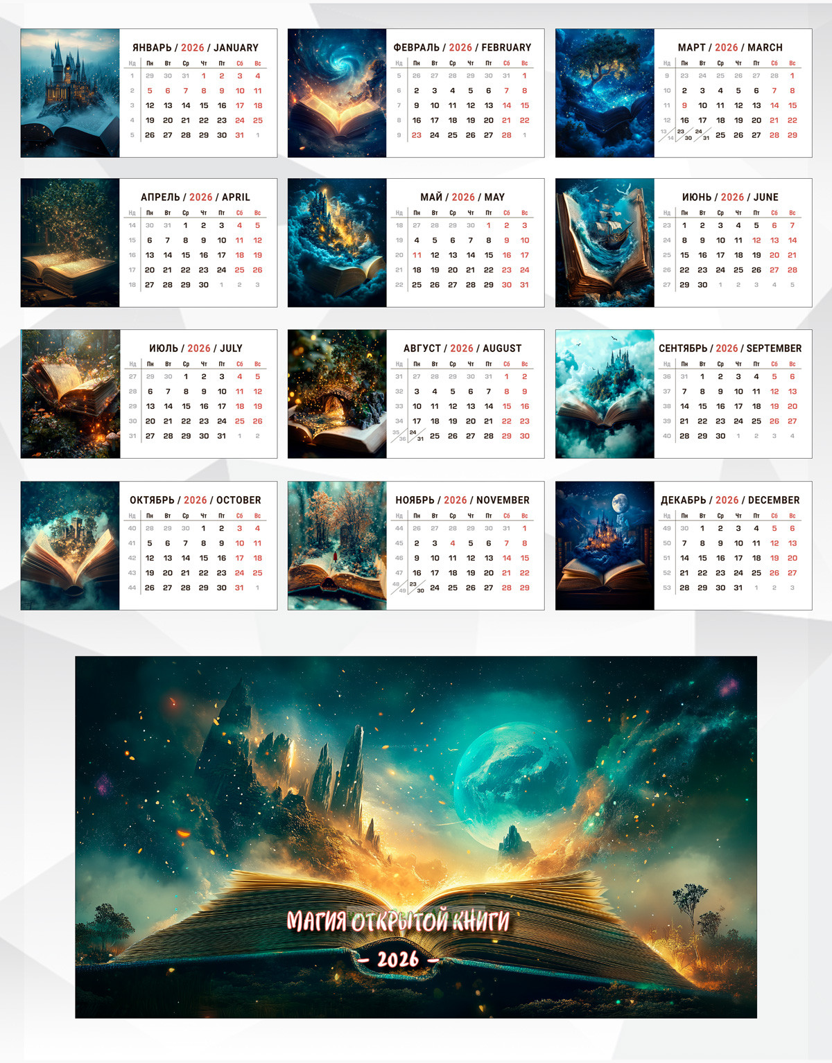 Календарь содержит изображения книг в магической обстановке, сгенерированные с помощью нейросети. Календарь будет отличным подарком для ваших родных, друзей, знакомых, коллег или даже для себя.