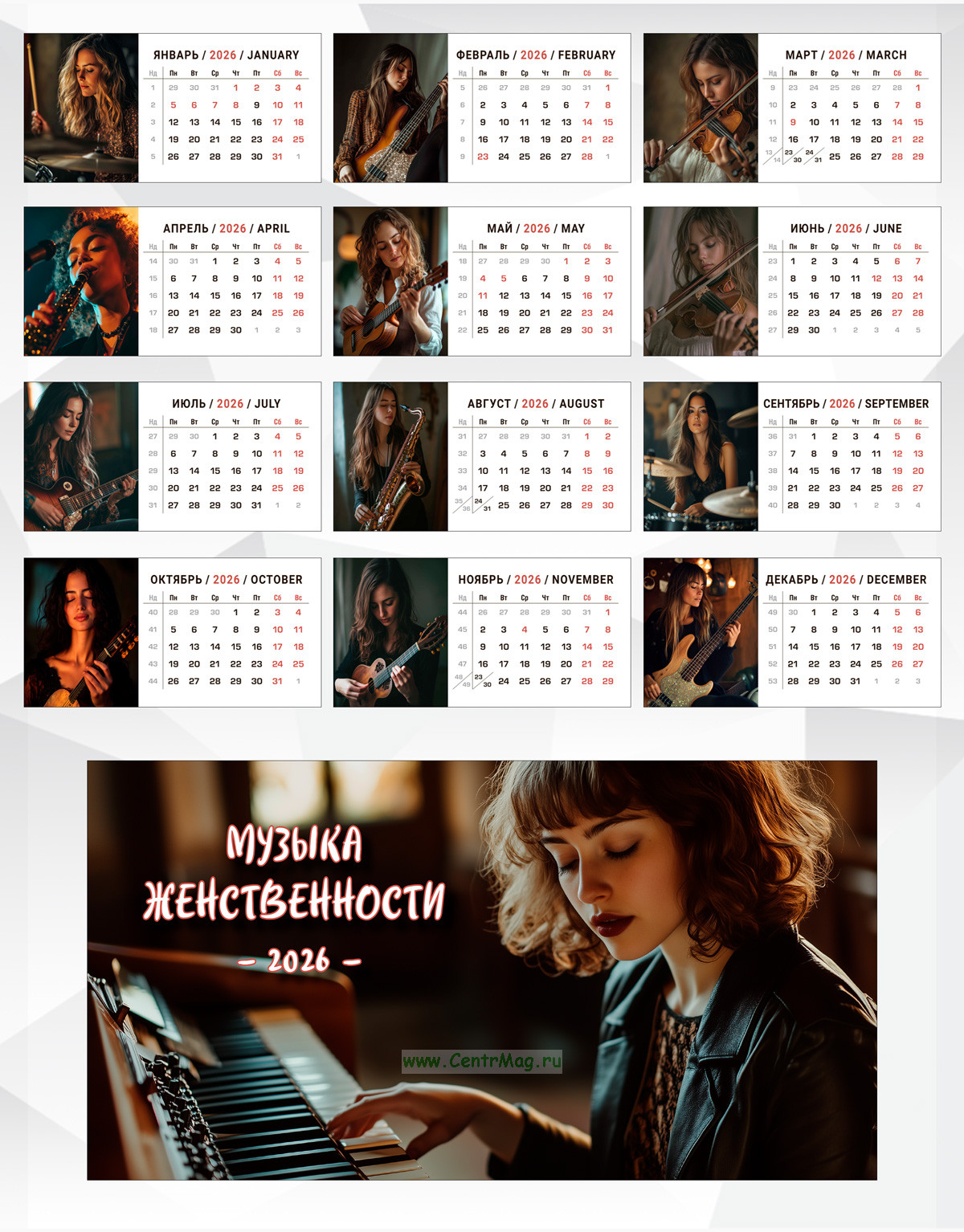 Календарь содержит изображения прекрасных девушек, сгенерированные с помощью нейросети, которые передают атмосферу игры на музыкальном инструменте. Календарь будет отличным подарком для ваших родных, друзей, знакомых, коллег или даже для себя.