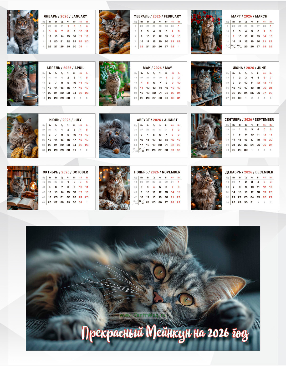 Календарь настенный, перекидной "Прекрасный Мейнкун" на 2026 год (550 руб.)