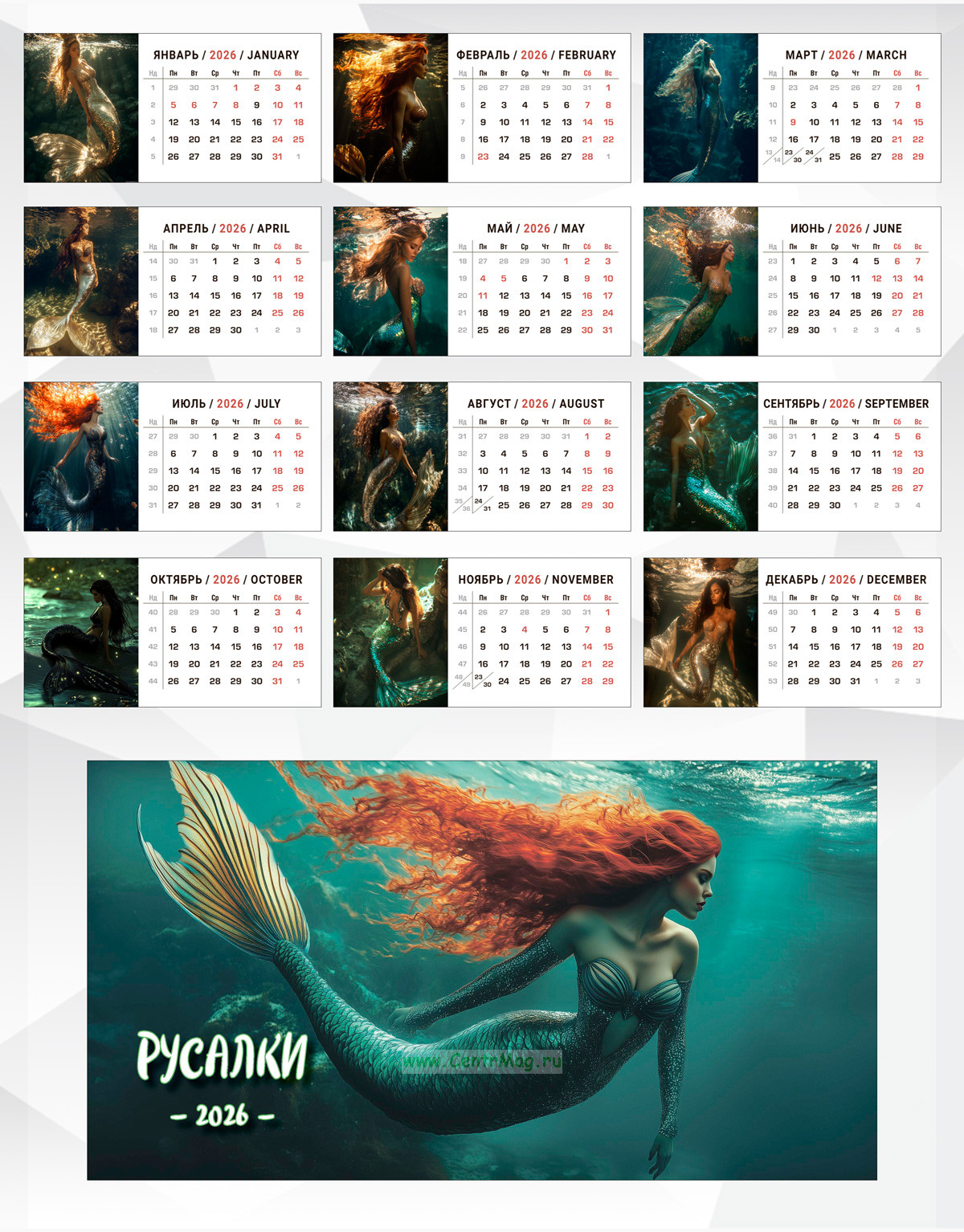 Календарь содержит изображения прекрасных мифологических существ Русалок, сгенерированные с помощью нейросети. Календарь будет отличным подарком для ваших родных, друзей, знакомых, коллег или даже для себя.