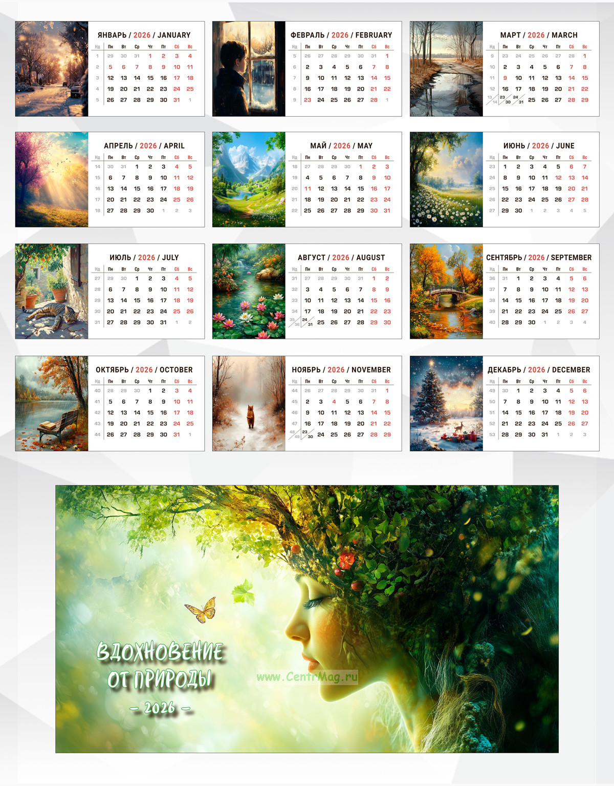 Календарь настенный, перекидной "Вдохновение от природы" на 2026 год (550 руб.)