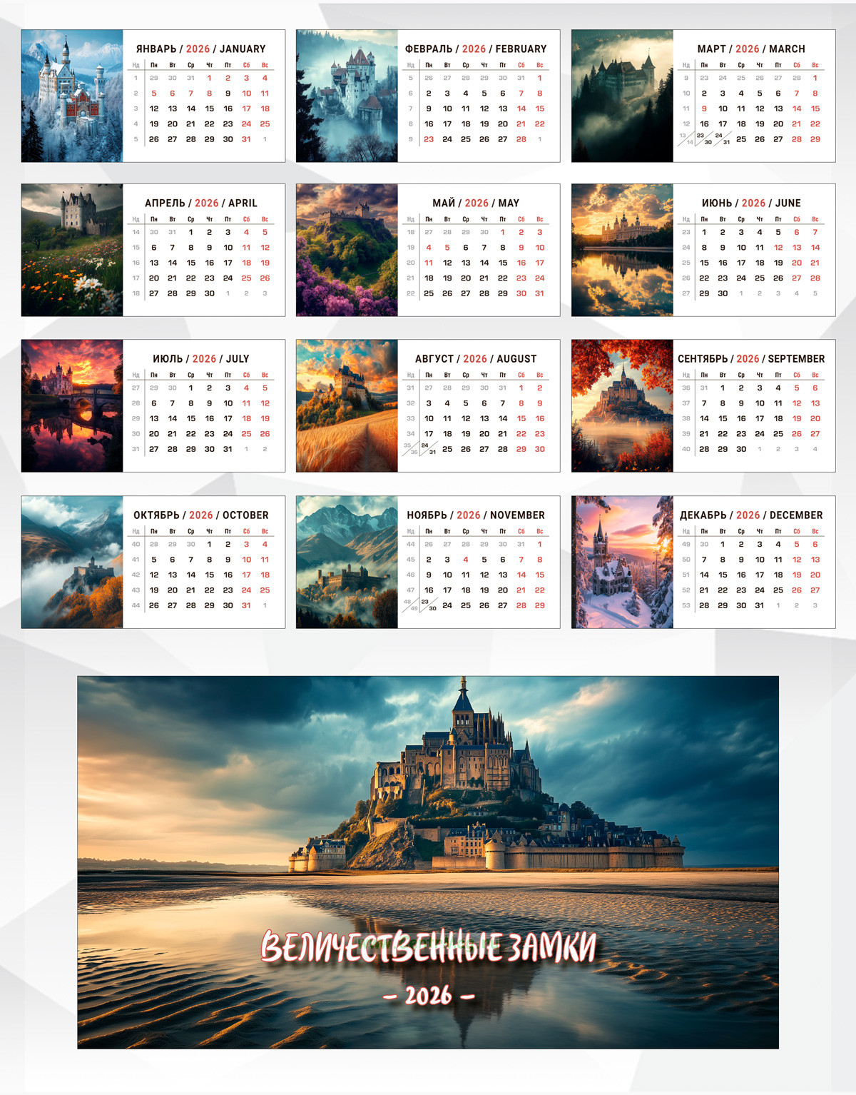 Настольный календарь-домик "Величественные замки" на 2026 год