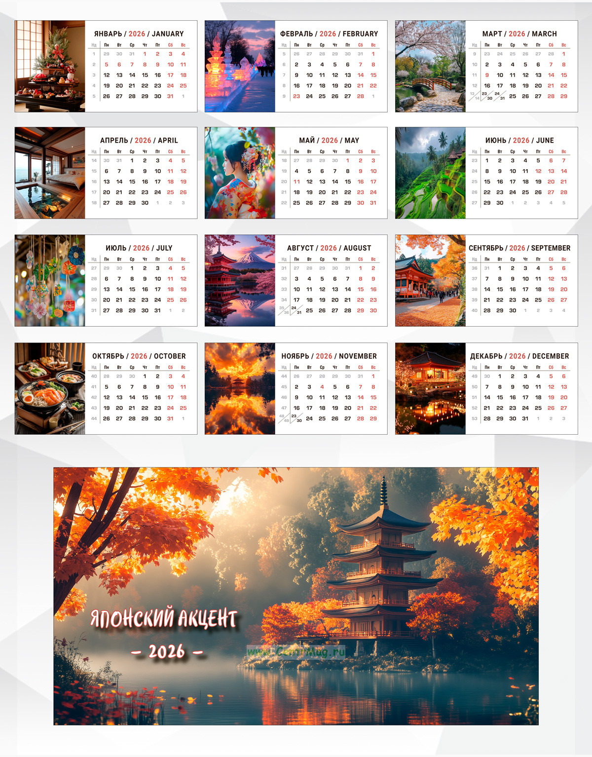 Настольный календарь-домик "Японский акцент" на 2026 год