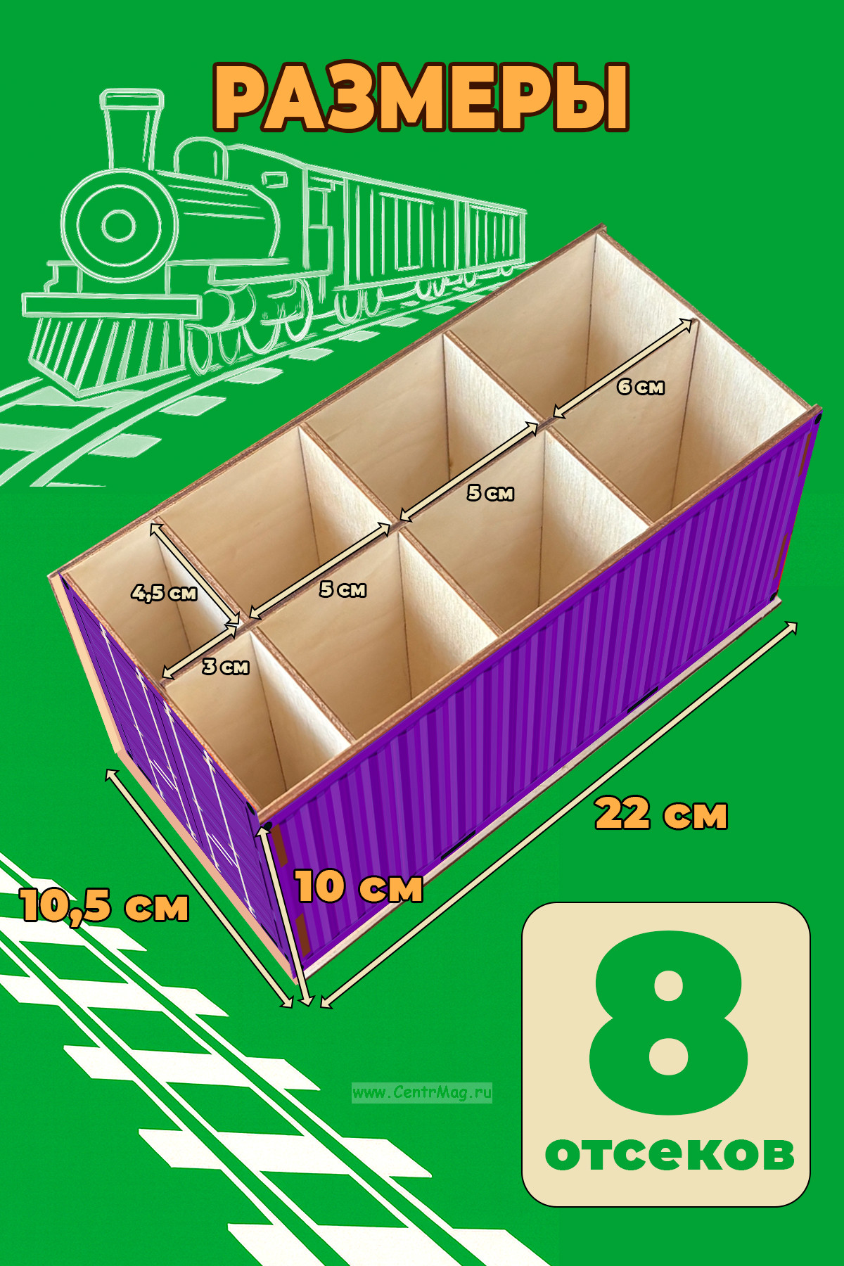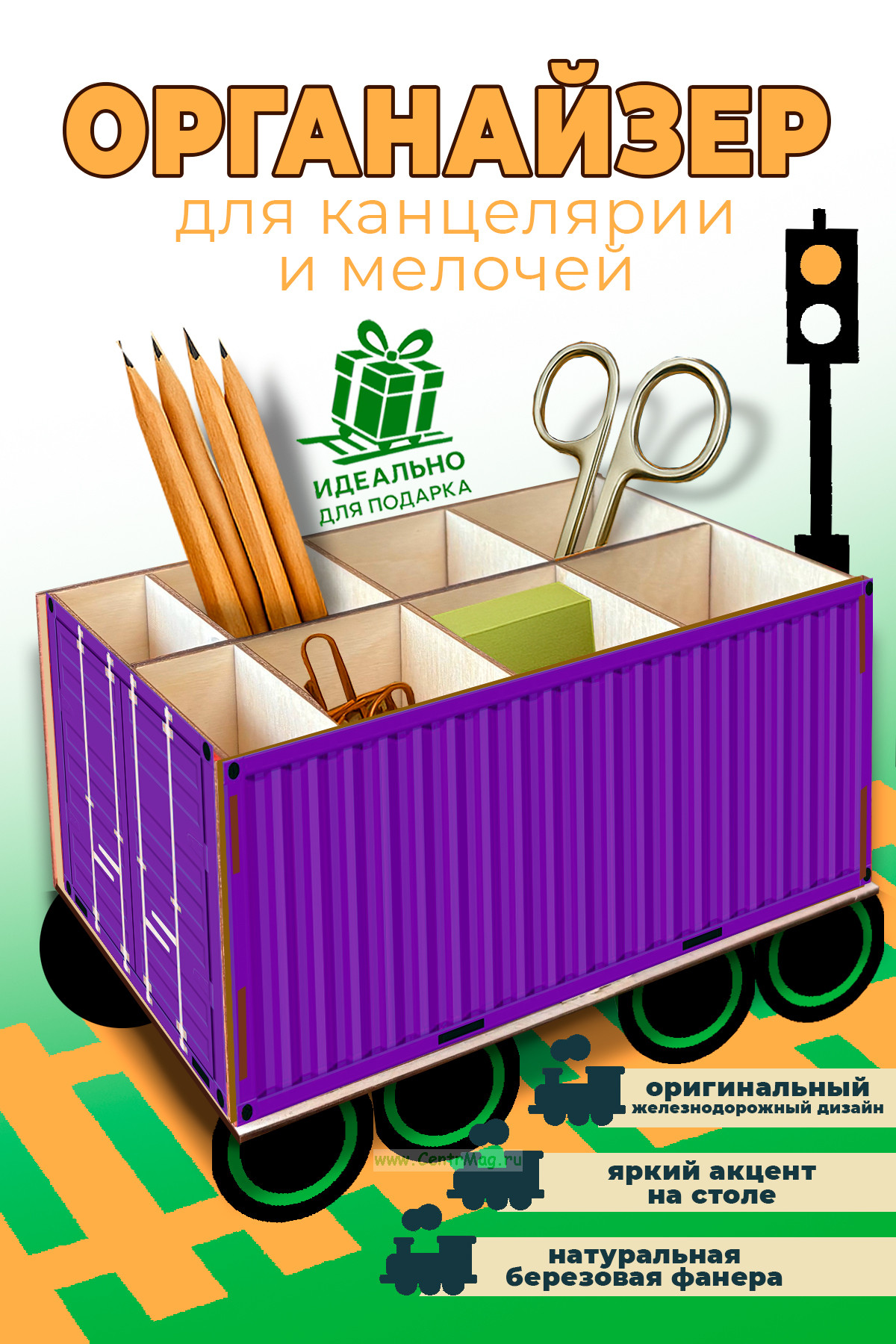 Стильный и функциональный органайзер в виде миниатюрного железнодорожного контейнера поможет навести порядок на столе и станет эффектным акцентом интерьера. Подходит для канцелярии и школьных принадлежностей, мелочей и аксессуаров.