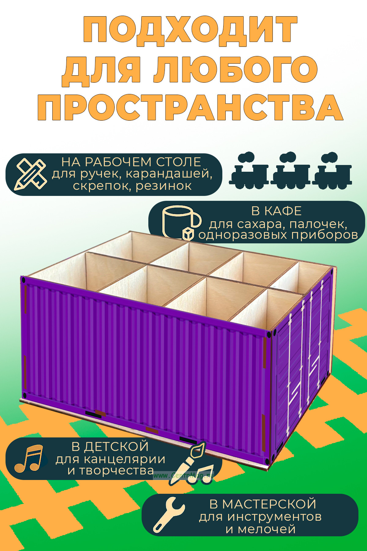 Настольный органайзер "Железнодорожный контейнер", зеленый (350 руб.)