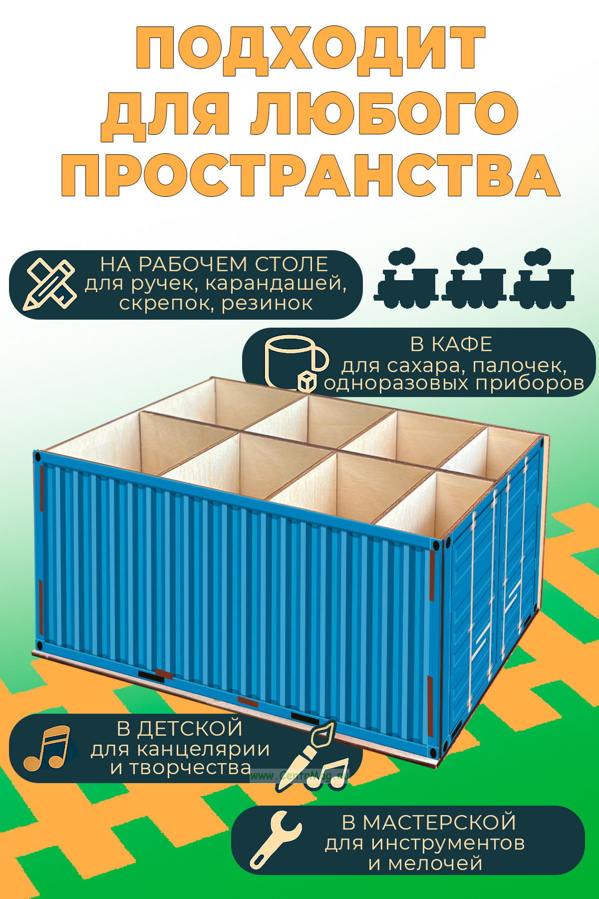 Настольный органайзер "Железнодорожный контейнер", зеленый (350 руб.)