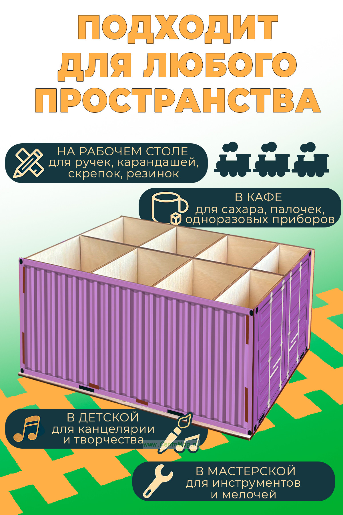 Настольный органайзер "Железнодорожный контейнер", зеленый (350 руб.)