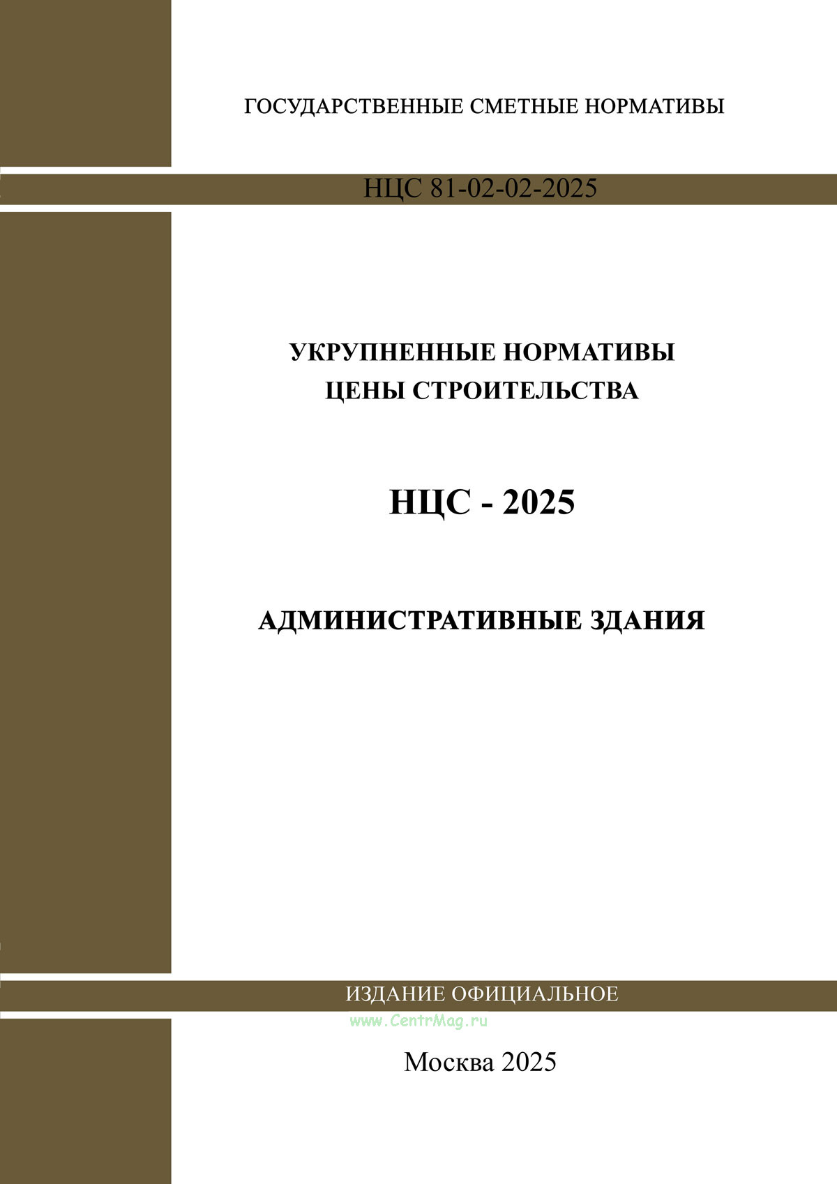 НЦС 81-02-02-2025 "Укрупненные нормативы цены строительства. Сборник N 02. Административные здания" утв. Приказом Минстроя России от 05.03.2025 № 138/пр