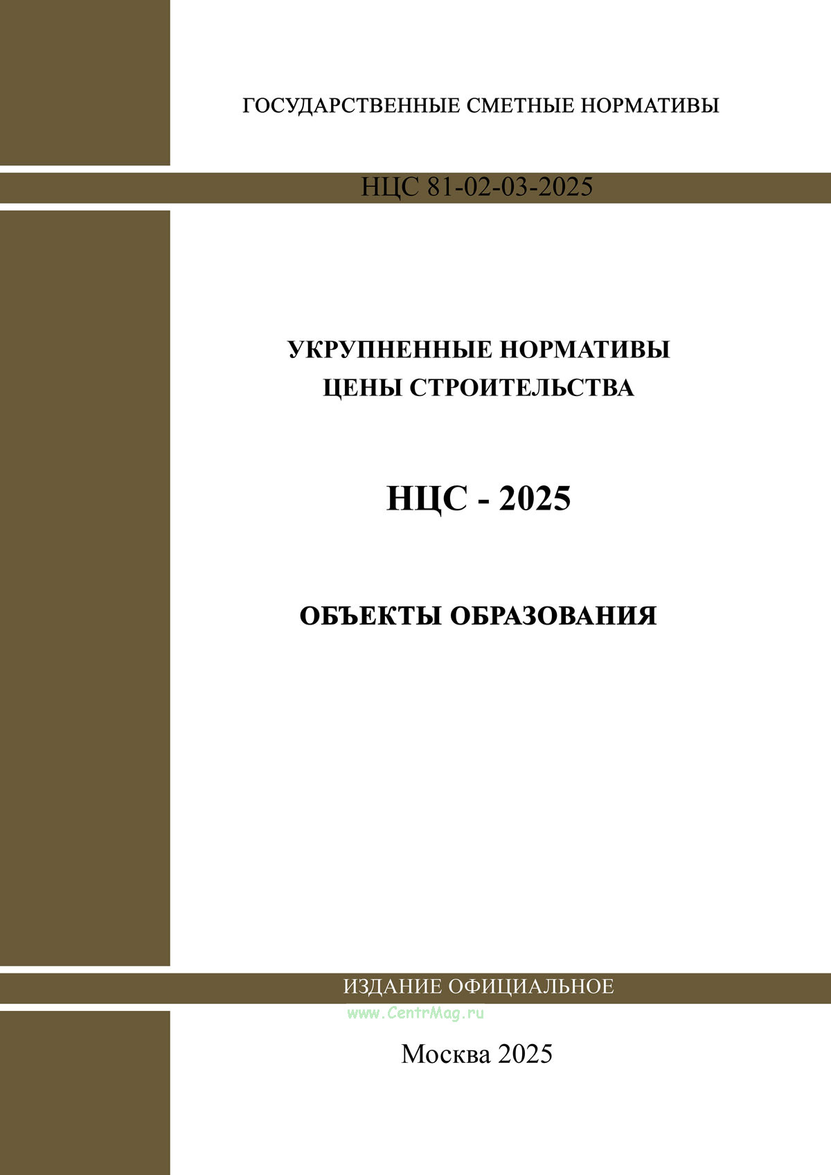 НЦС 81-02-03-2025 "Укрупненные нормативы цены строительства. Сборник N 03. Объекты образования" утв. Приказом Минстроя России от 31.03.2025 № 194/пр