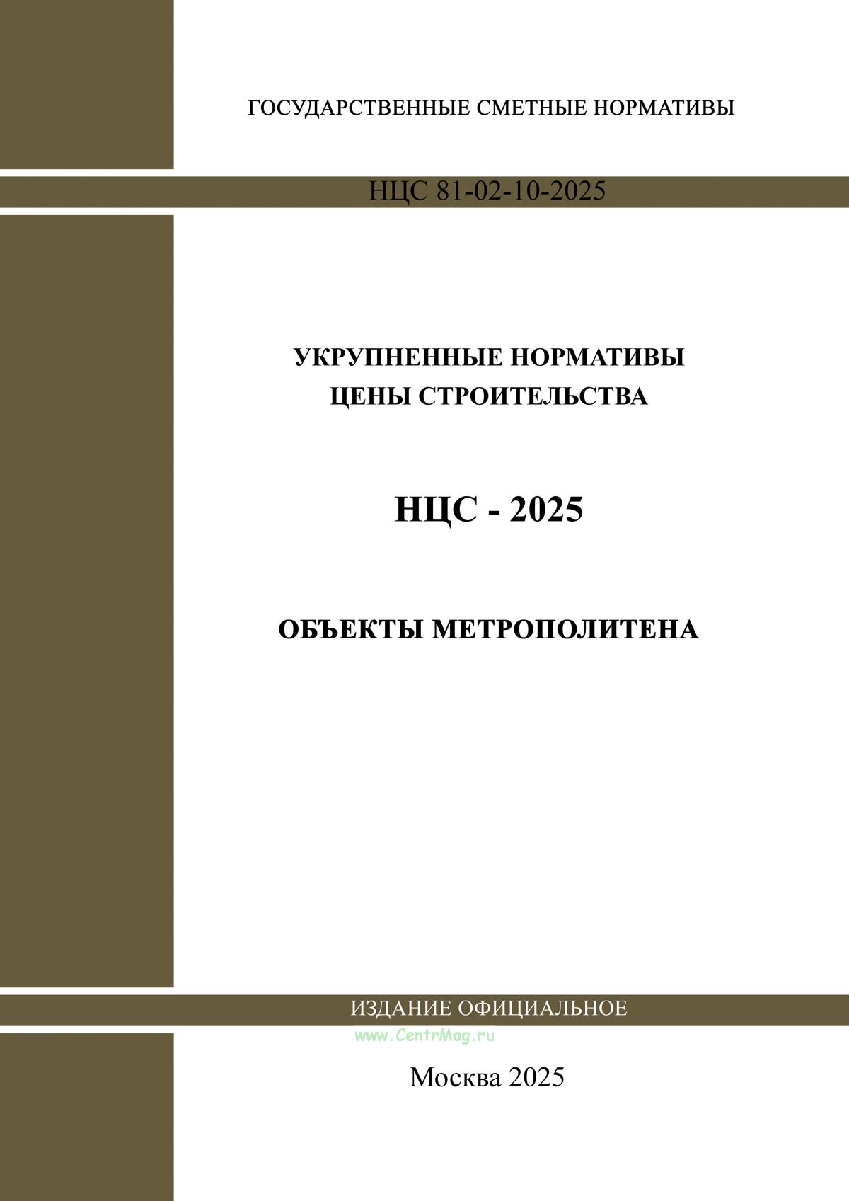 НЦС 81-02-10-2025 "Укрупненные нормативы цены строительства. Сборник N 10. Объекты метрополитена" утв. Приказом Минстроя России от 105.03.2025 № 129/пр