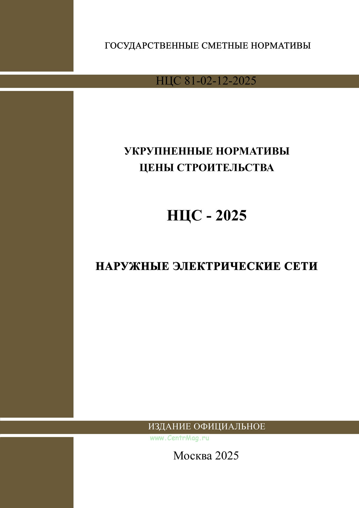 НЦС 81-02-12-2025 "Укрупненные нормативы цены строительства. Сборник N 12. Наружные электрические сети" утв. Приказом Минстроя России от 31.03.2025 № 196/пр